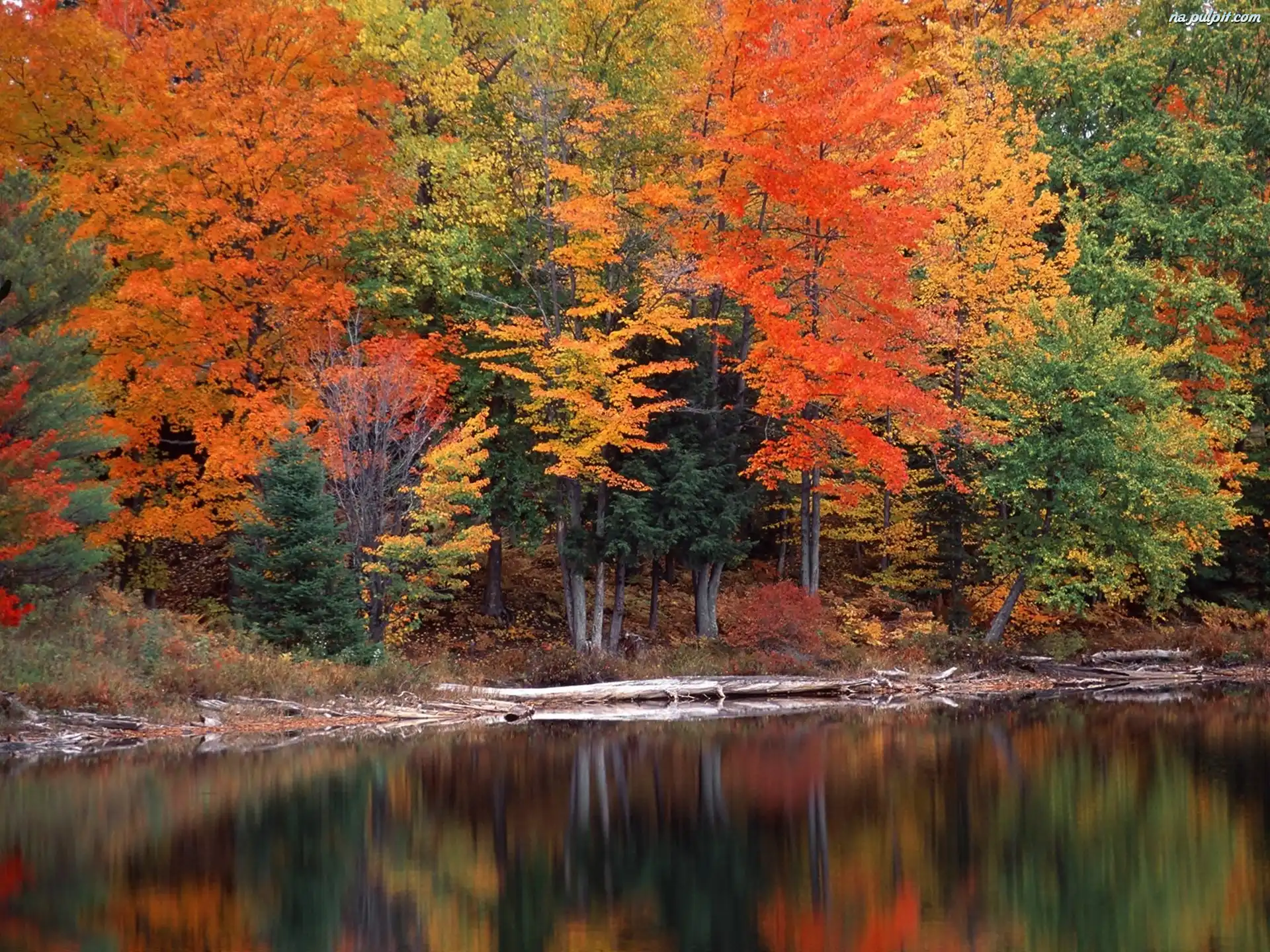 Jeziorko, Drzewa, Kolorowe, Las Na Pulpit