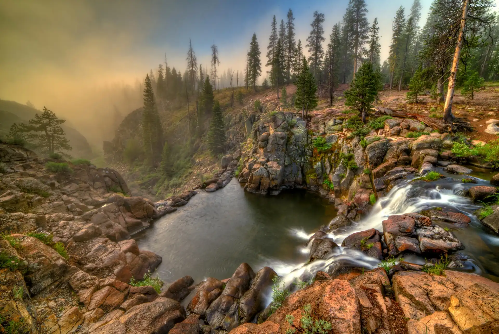 Jeziorko, Mgła, Kalifornia, Wodospad, Las, Kanion Na Pulpit