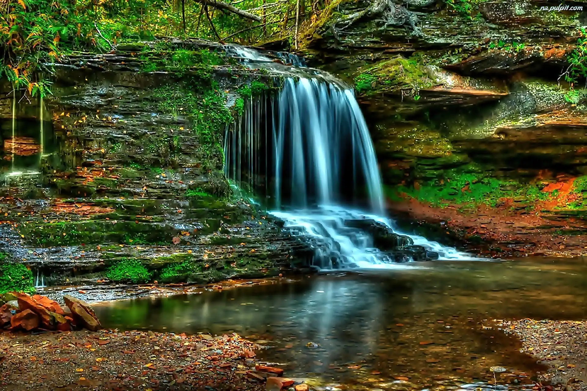Jeziorko, Skały, Wodospad, Mchy Na Pulpit
