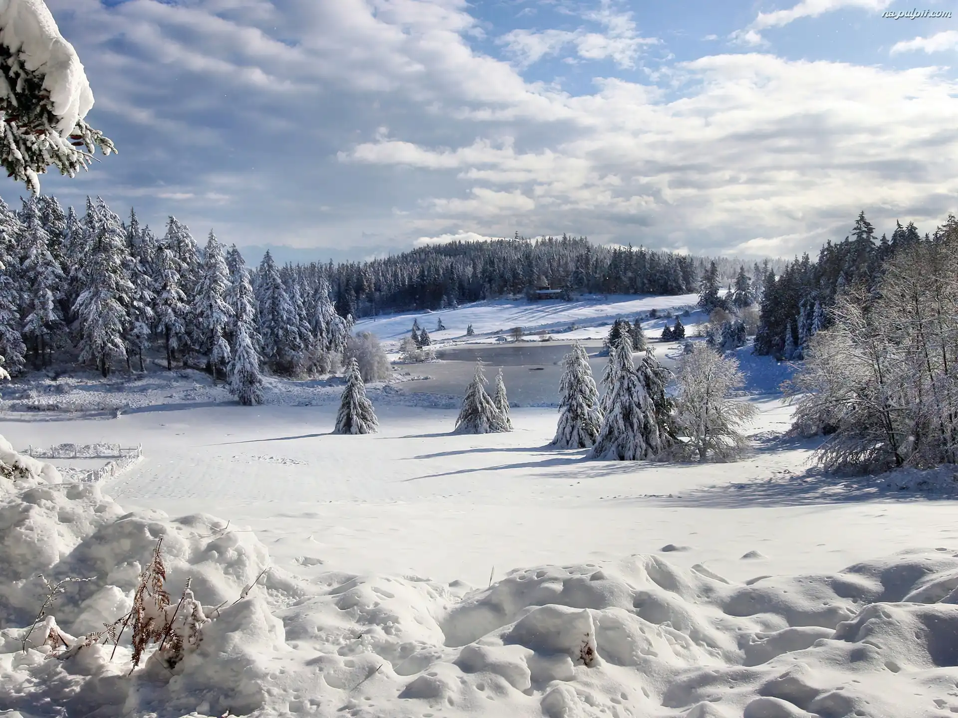 Jeziorko, Lasy, Zima, Zamarznięte Na Pulpit