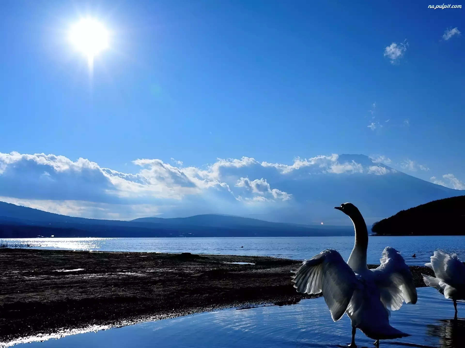Łabędzie, Jezioro, Chmury Na Pulpit