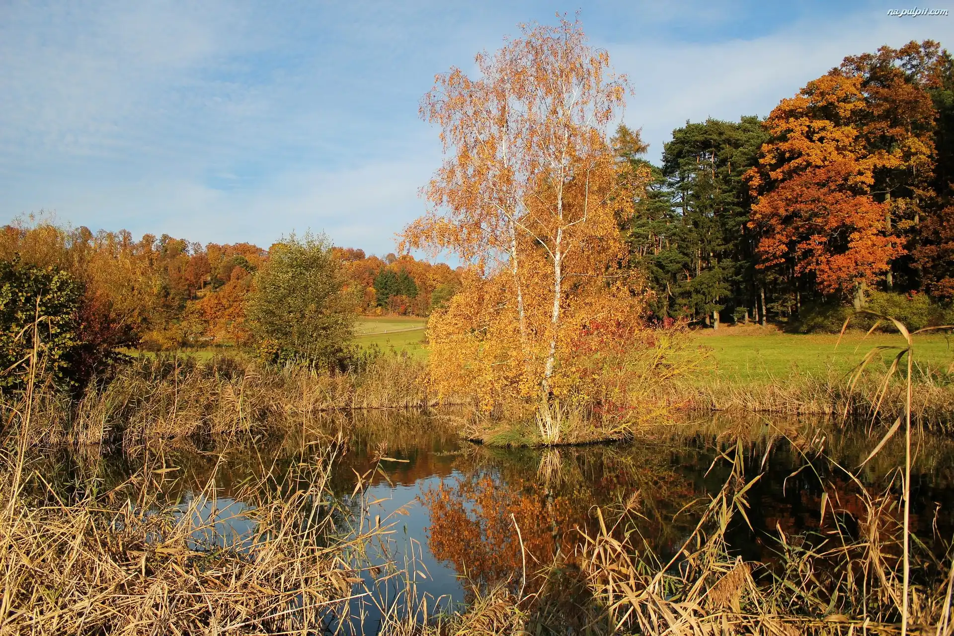 Łąka, Jezioro, Drzewa