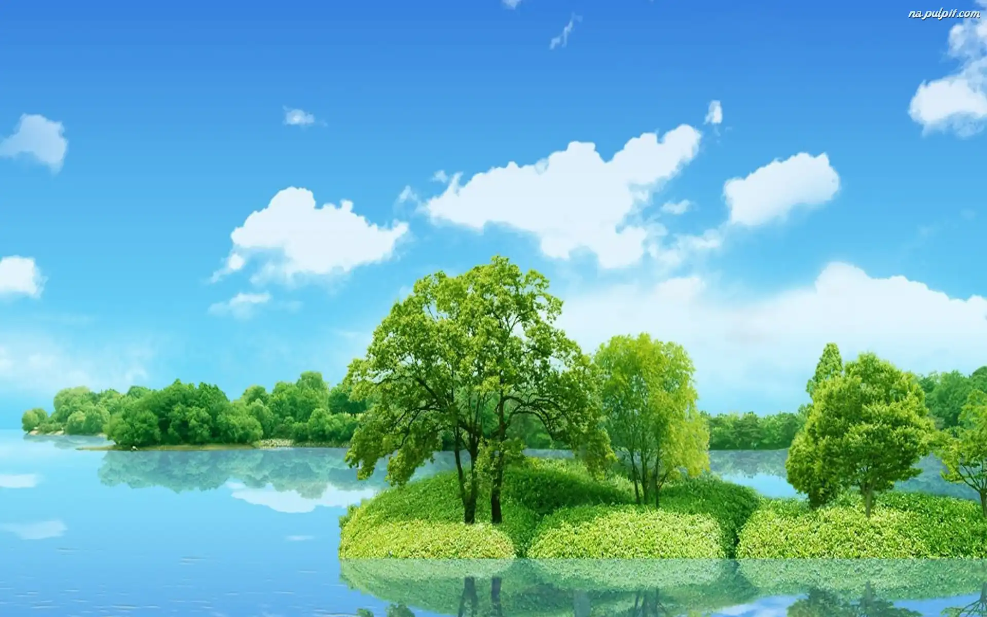 Chmurki, Jezioro, Drzewa Na Pulpit