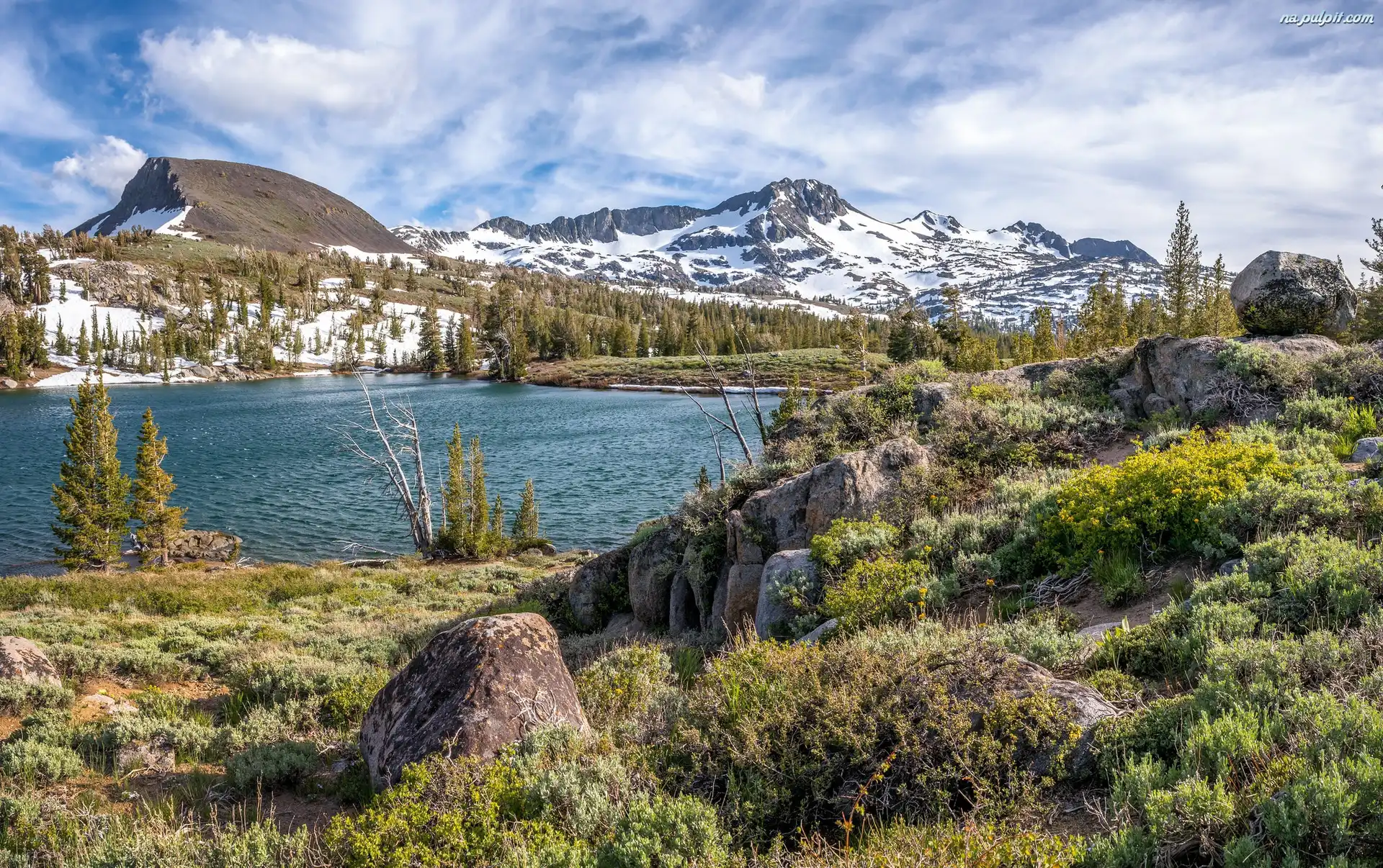 Kamienie, Góry, Jezioro Ławka, Jesień, Jezioro Polska, Morskie, Oko Jezioro, Góry, Chmurki Plaża, Fale, Góry, Morze Góra Góra Góra, Jeziora Góra Góry, Krzewy palmy, Chmura, Góry, Niebo Góry, śnieg domki, Góry, dwa drzewa skały, Niebo