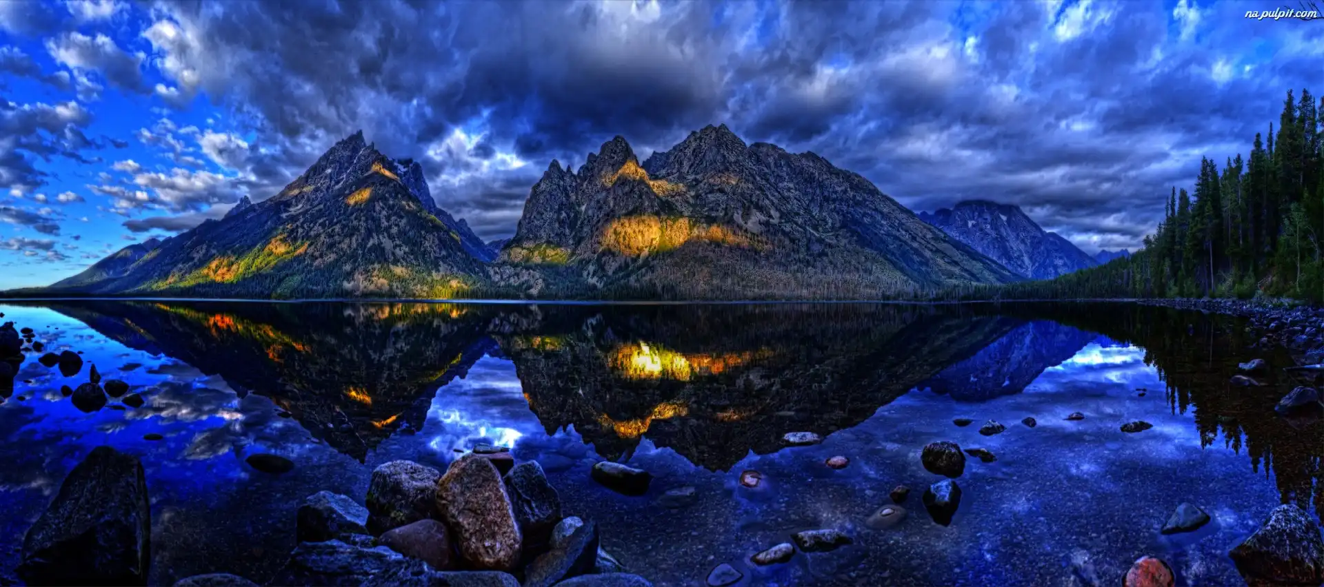 Jezioro, Góry, Chmury, Odbicie Na Pulpit