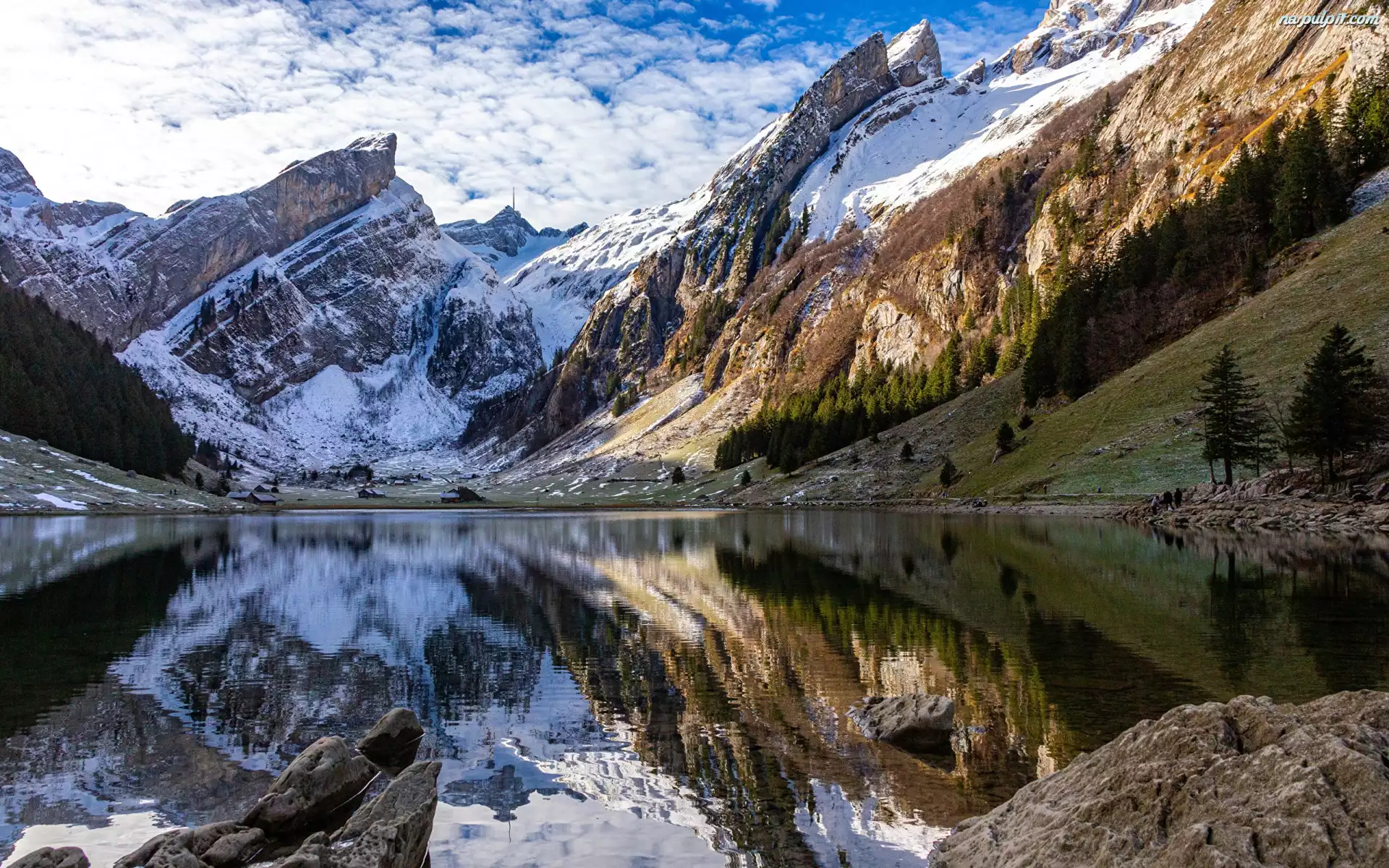 Kamienie, Góry, Jezioro Ławka, Jesień, Jezioro Polska, Morskie, Oko Jezioro, Góry, Chmurki Plaża, Fale, Góry, Morze Góra Góra Góra, Jeziora Góra Góry, Krzewy palmy, Chmura, Góry, Niebo Góry, śnieg domki, Góry, dwa drzewa skały, Niebo