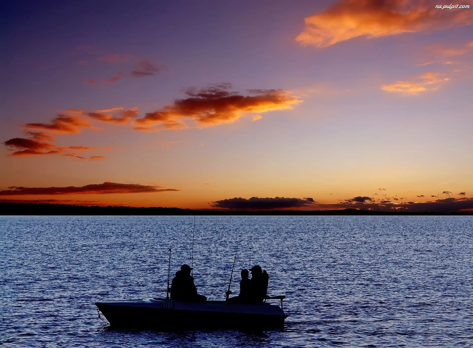 Łódka, Chmury, Jezioro, Wędkarze Na Pulpit