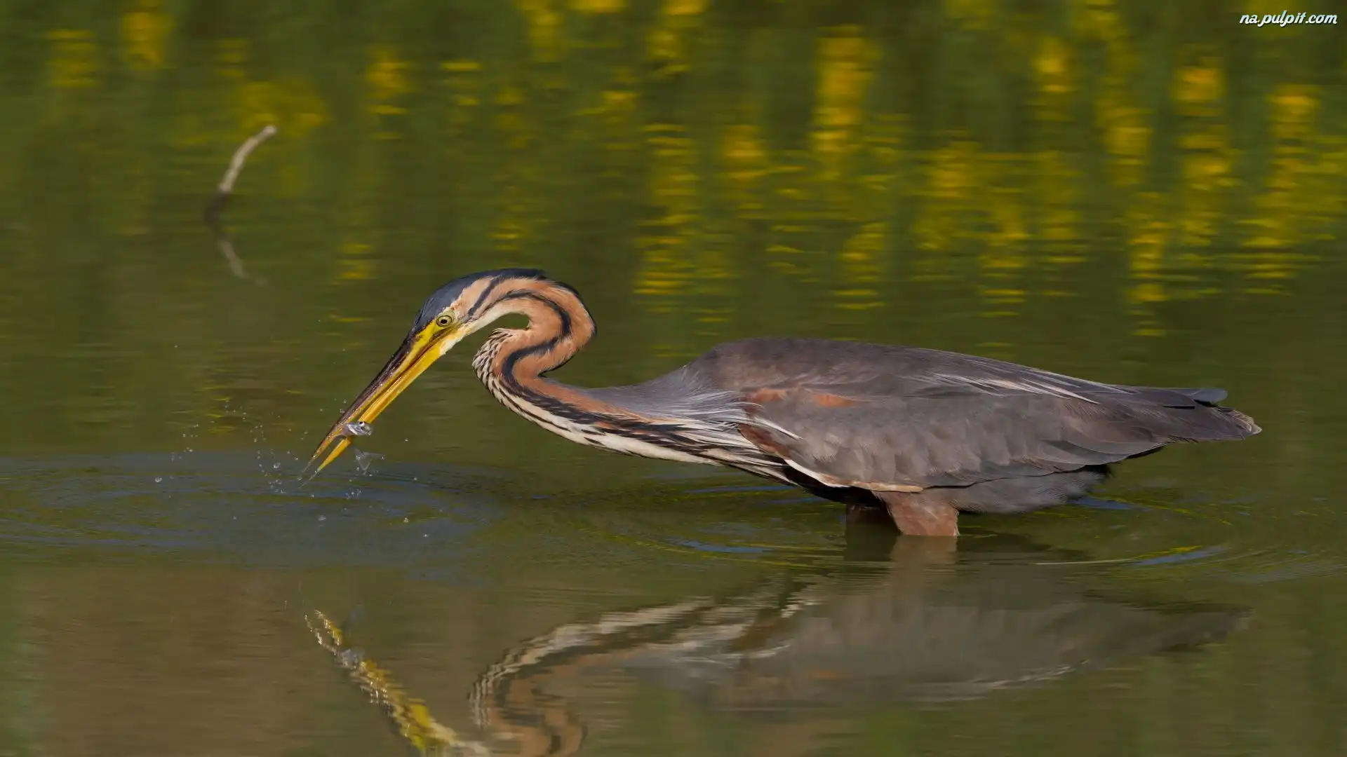 Jezioro, Purpurowa, Czapla, Żerowanie