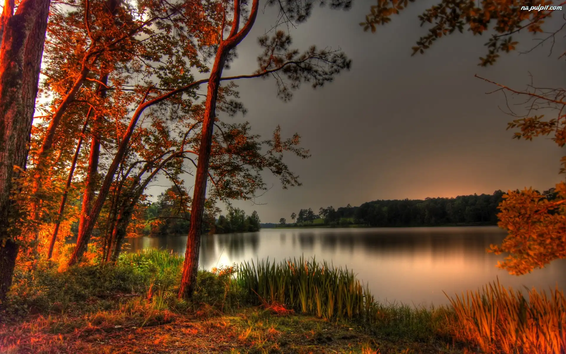 Drzewa, Jezioro, Jesień Na Pulpit