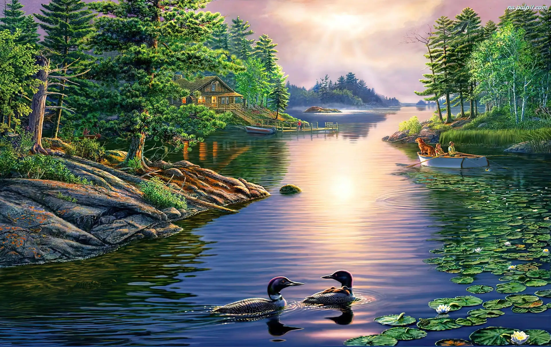Domki, Brukowiec, Most, Rzeka Zima, Jezioro, Górskie Obraz, Olejny Drzew, Jezioro, Leśne, Korony Alice X. Zhang, Ariel Góra, Jeziora Kaczka Podgorzałka Carinthia, Jezioro, Faaker See czerwony, woda, Kaczka, dziób Kamień, Kaczki, Dzikie, Woda Donald Zolan, Rodzeństwo, Spacer Luis Royo, Indianie Obraz, Bitwa, Żaglowce, Morska Królik, Kaczuszka