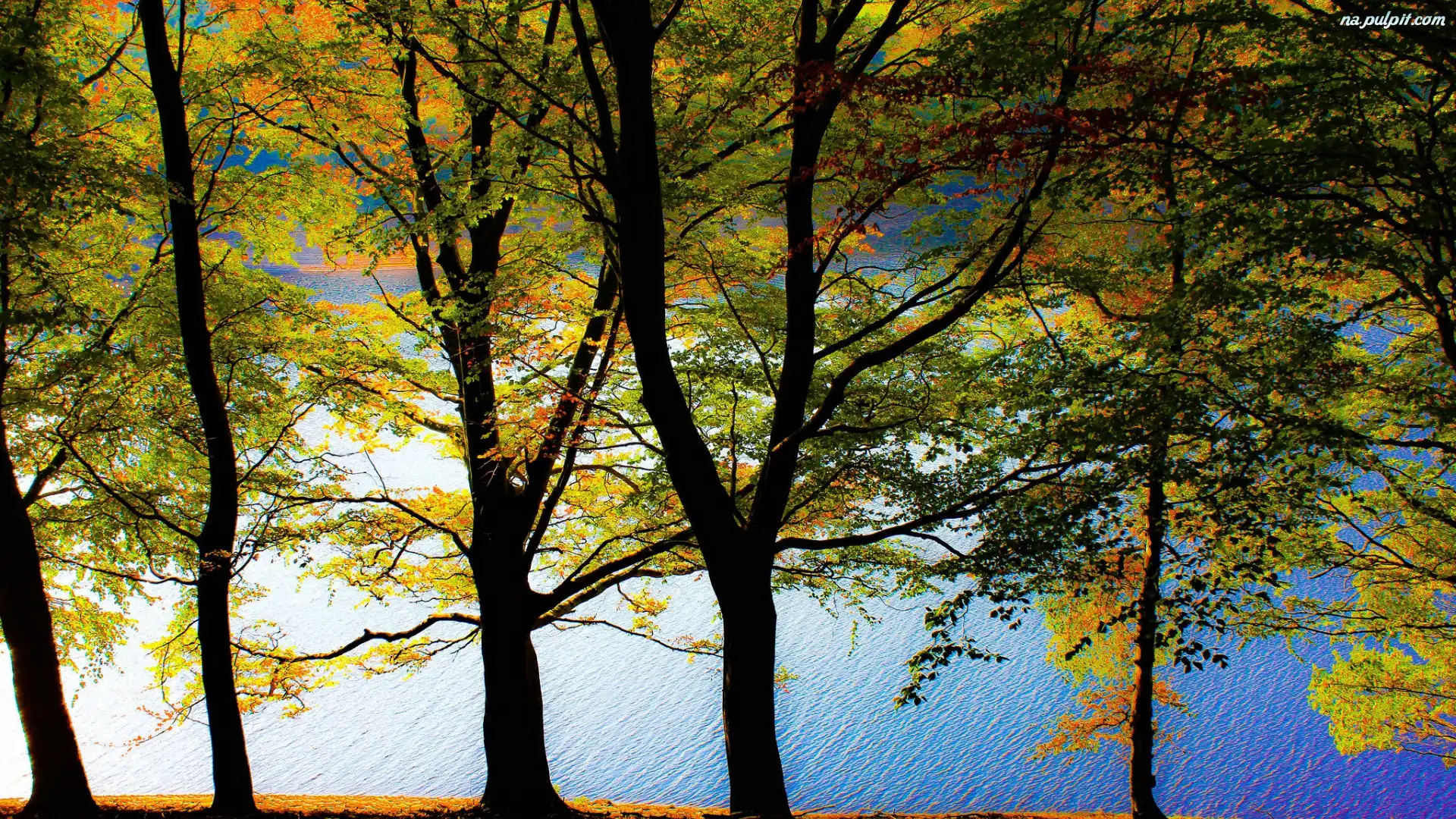 Jezioro, Kolorowe, Drzewa, Liście Na Pulpit