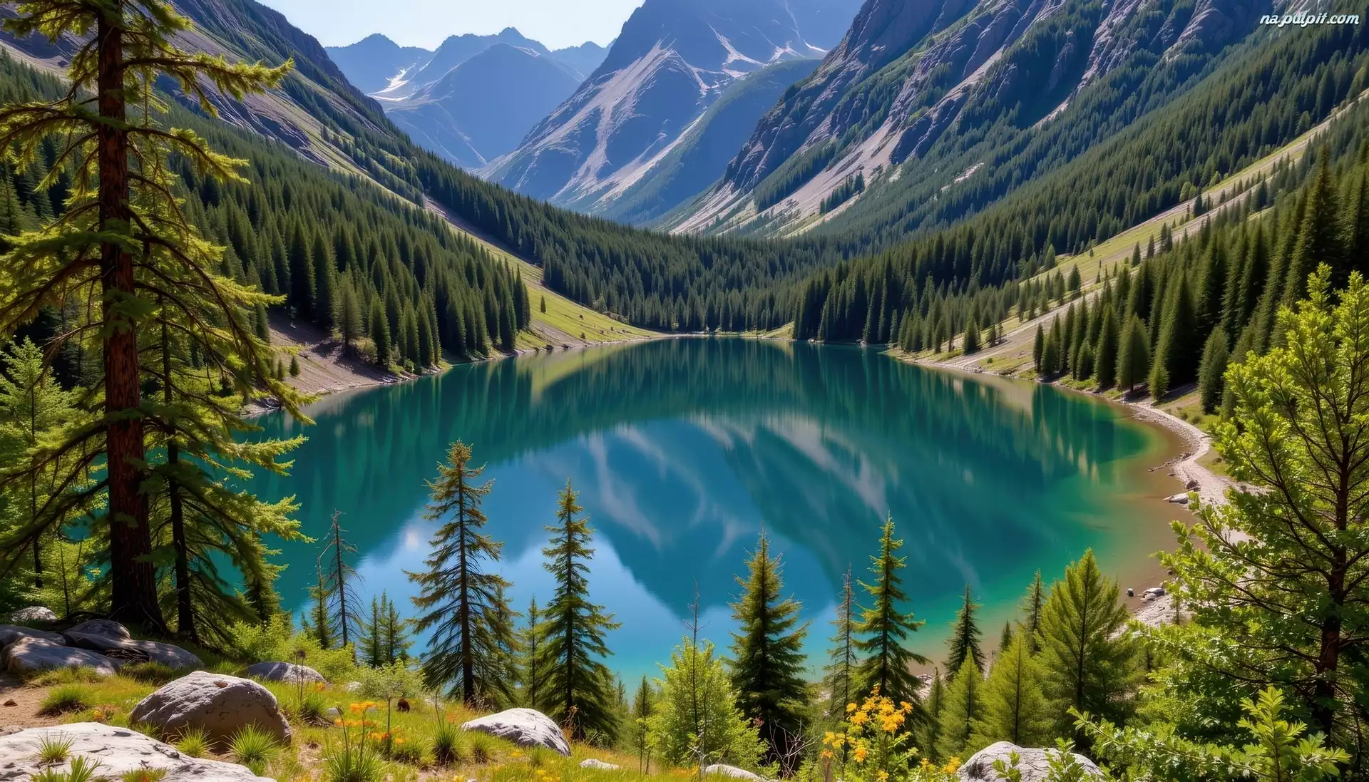 Góry, Jezioro, Drzewa, Grafika, Lasy Na Pulpit
