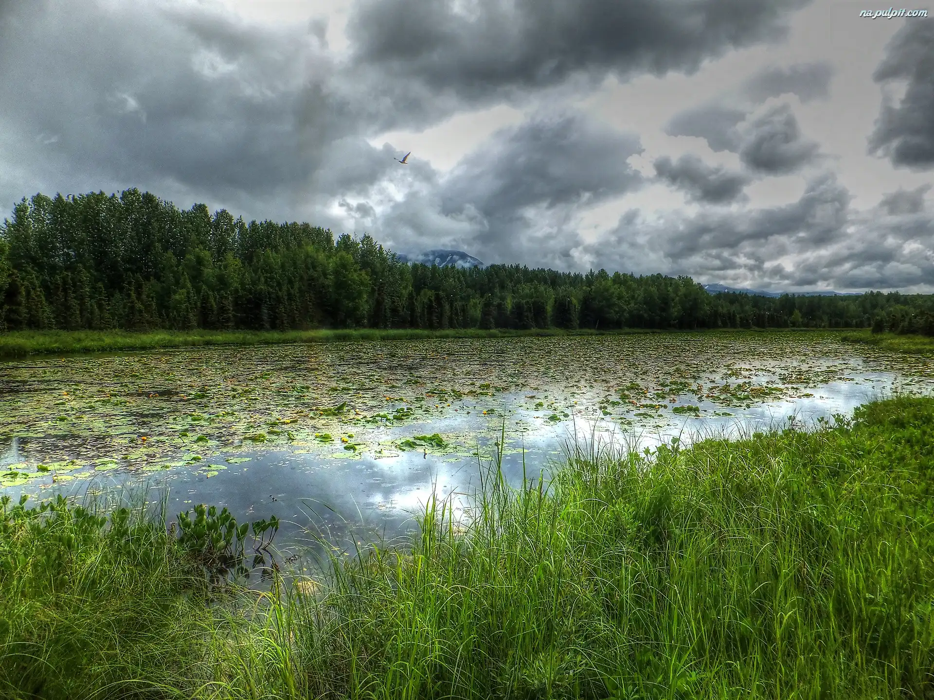 Drzewa, Jezioro, Trawy Na Pulpit