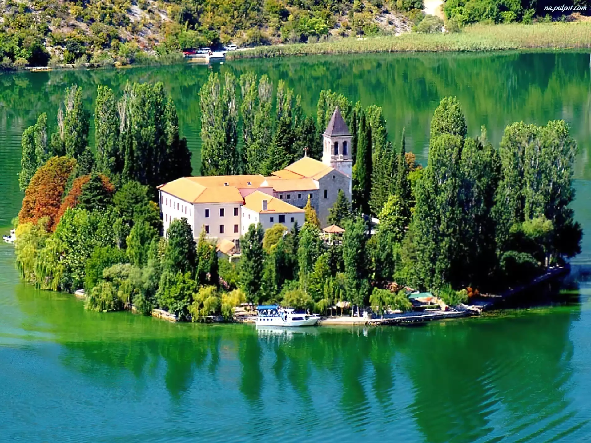 Zamek, Jezioro, Drzewa Na Pulpit