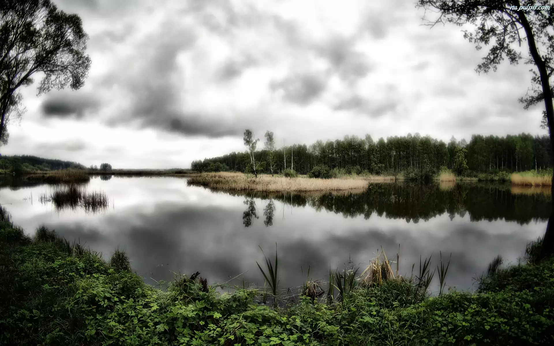 Drzewa, Jezioro, Zarośla Na Pulpit