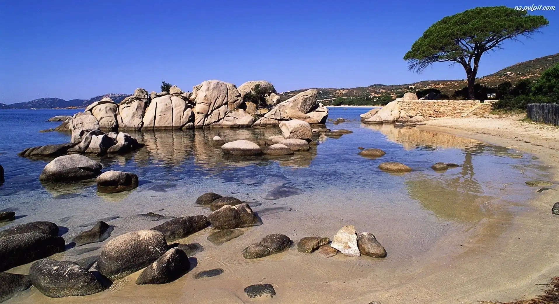 Drzewo, Jezioro, Kamienie Na Pulpit