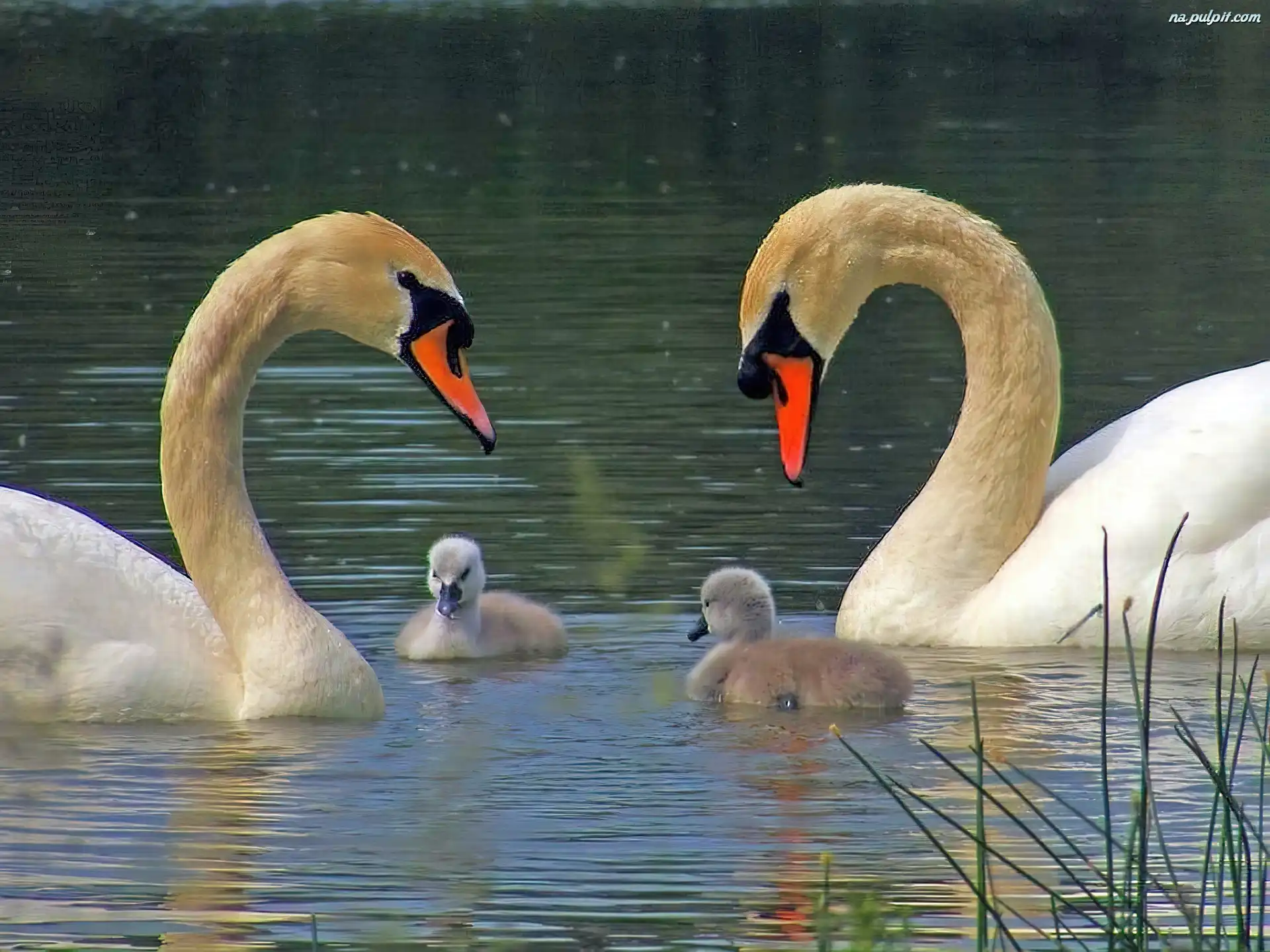 Jezioro, Łabędzie, Dwa, Małe Na Pulpit