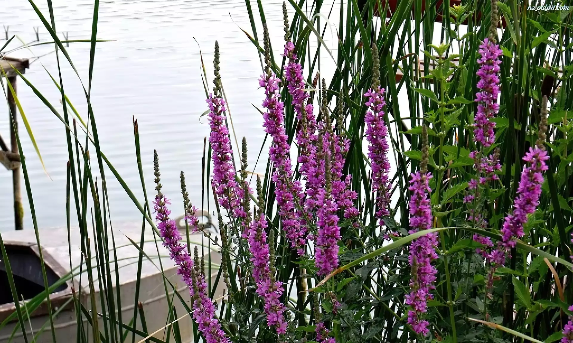 Łódka, Fioletowe, Jezioro, Kwiaty