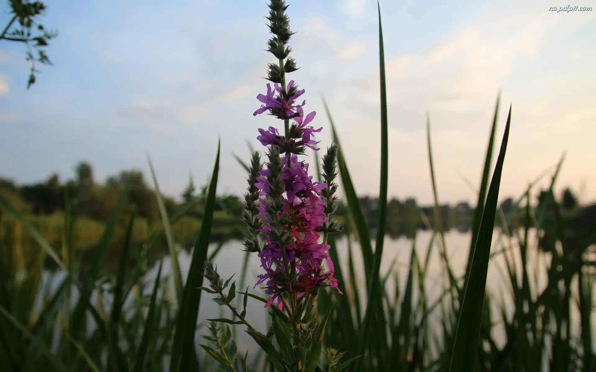 Jezioro, Kwiat, Fioletowy, Trawa Na Pulpit