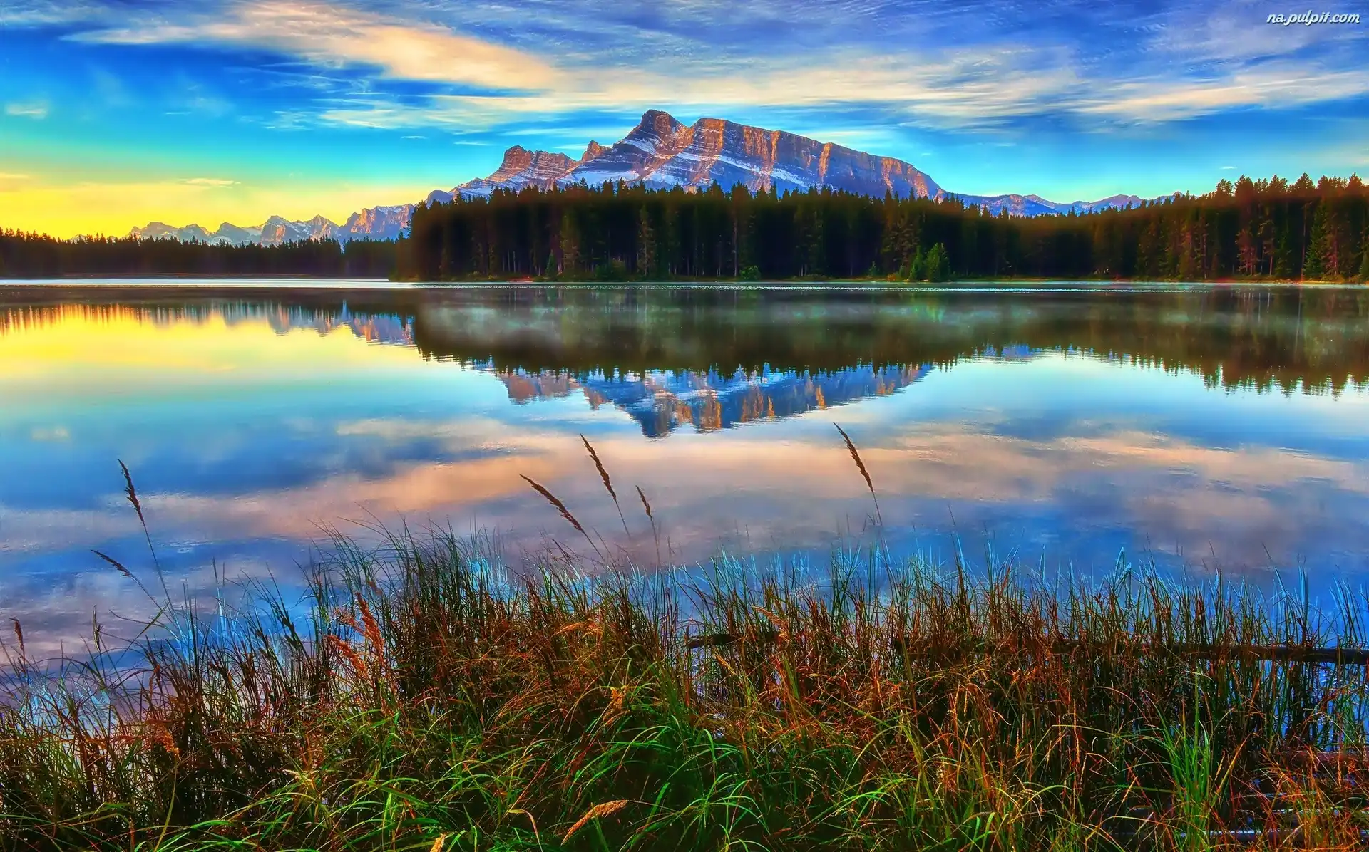 Trawa, Prowincja Alberta, Las, Góry, Park Narodowy Banff, Kanada, Jezioro Na Pulpit
