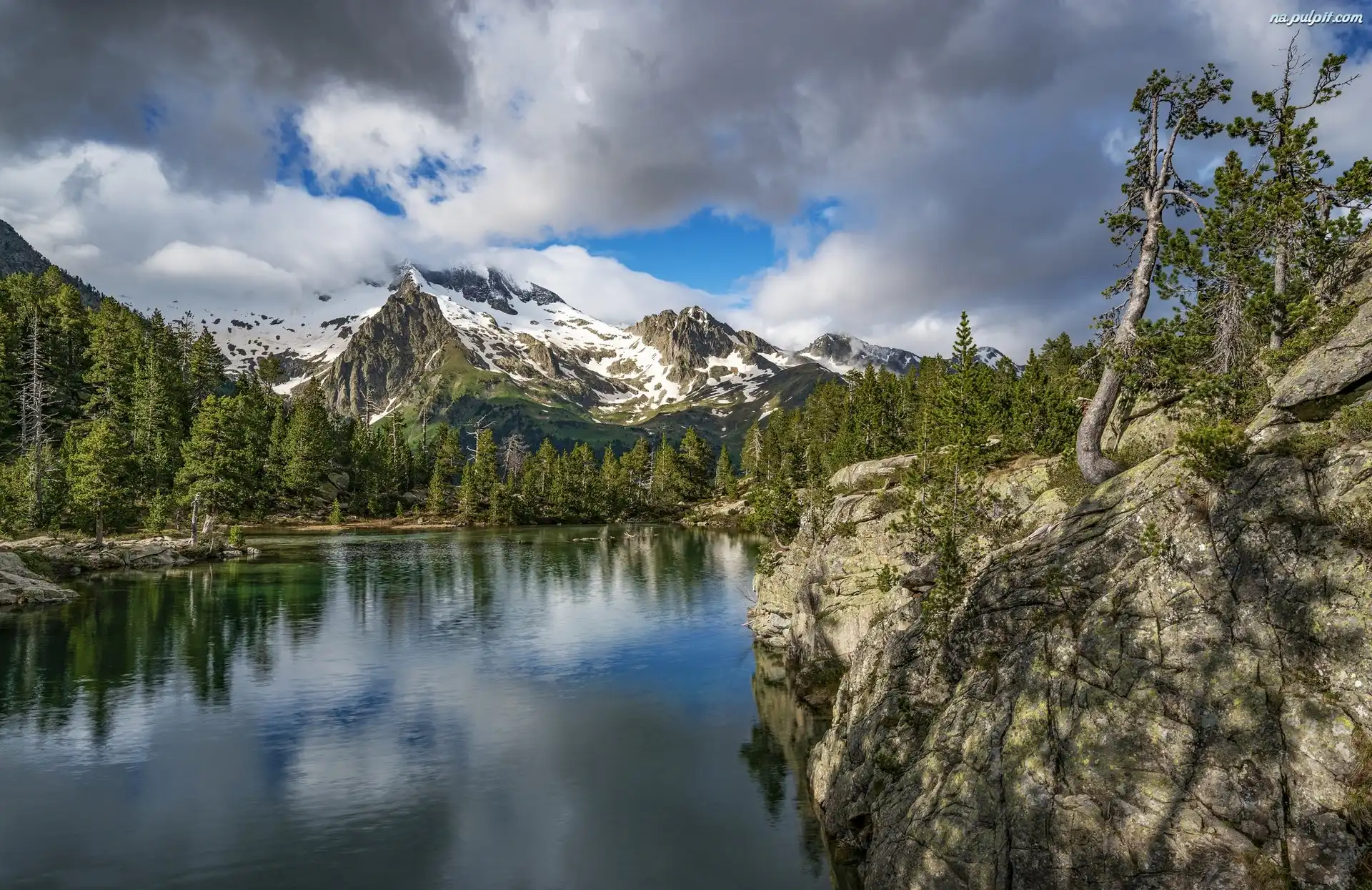 Jezioro, Drzewa, Góry, Skały Na Pulpit