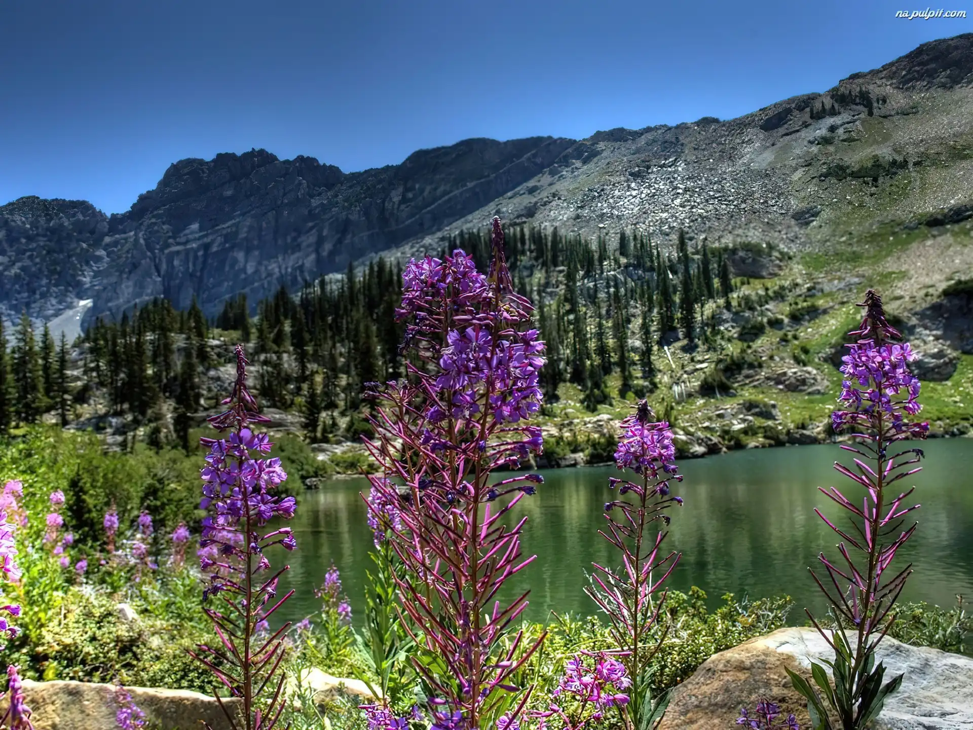 Góry, Jezioro, Kwiaty Na Pulpit