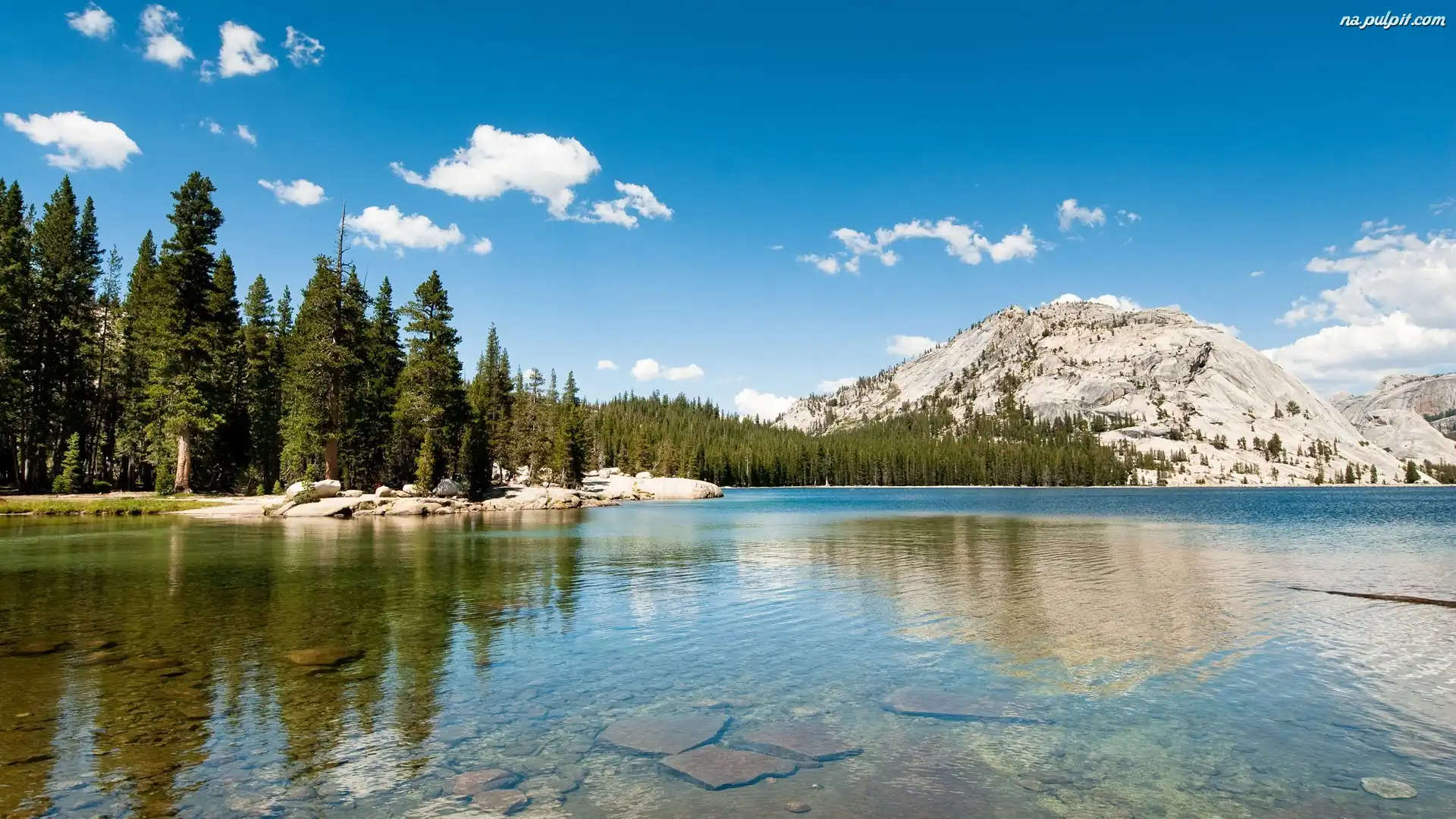 Las, Jezioro Tenaya, Park Narodowy Yosemite, Kalifornia, Góry Na Pulpit