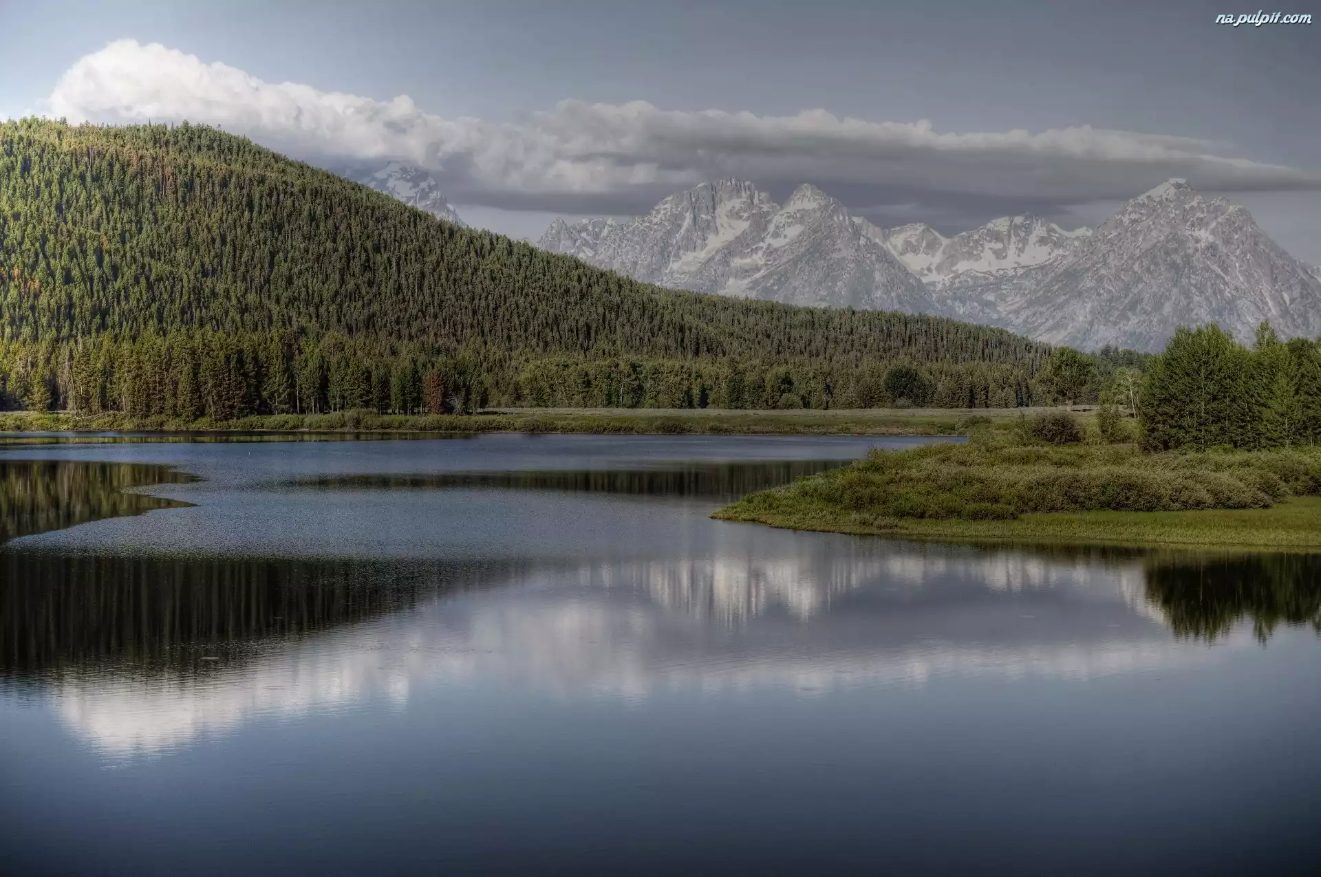 Jezioro, Lasy, Góry, Chmury Na Pulpit