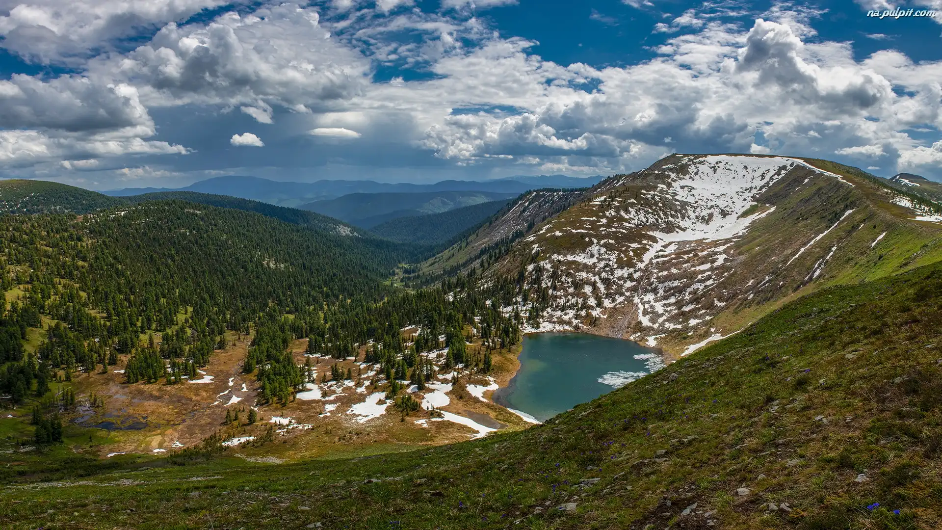 Śnieg, Góry, Lasy, Jezioro, Chmury Na Pulpit
