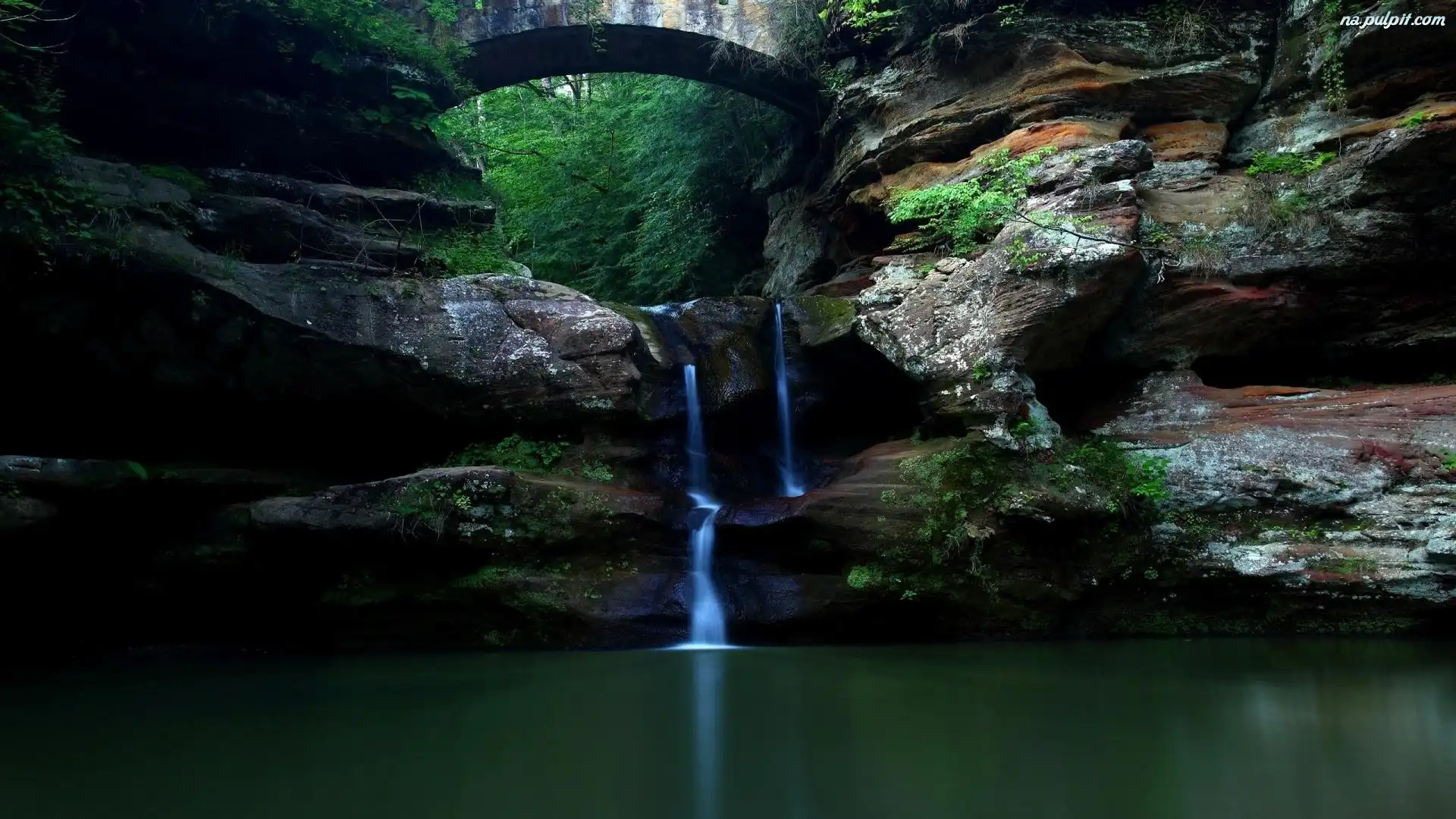 Jezioro, Wodospadzik, Jaskinia, Skały Na Pulpit