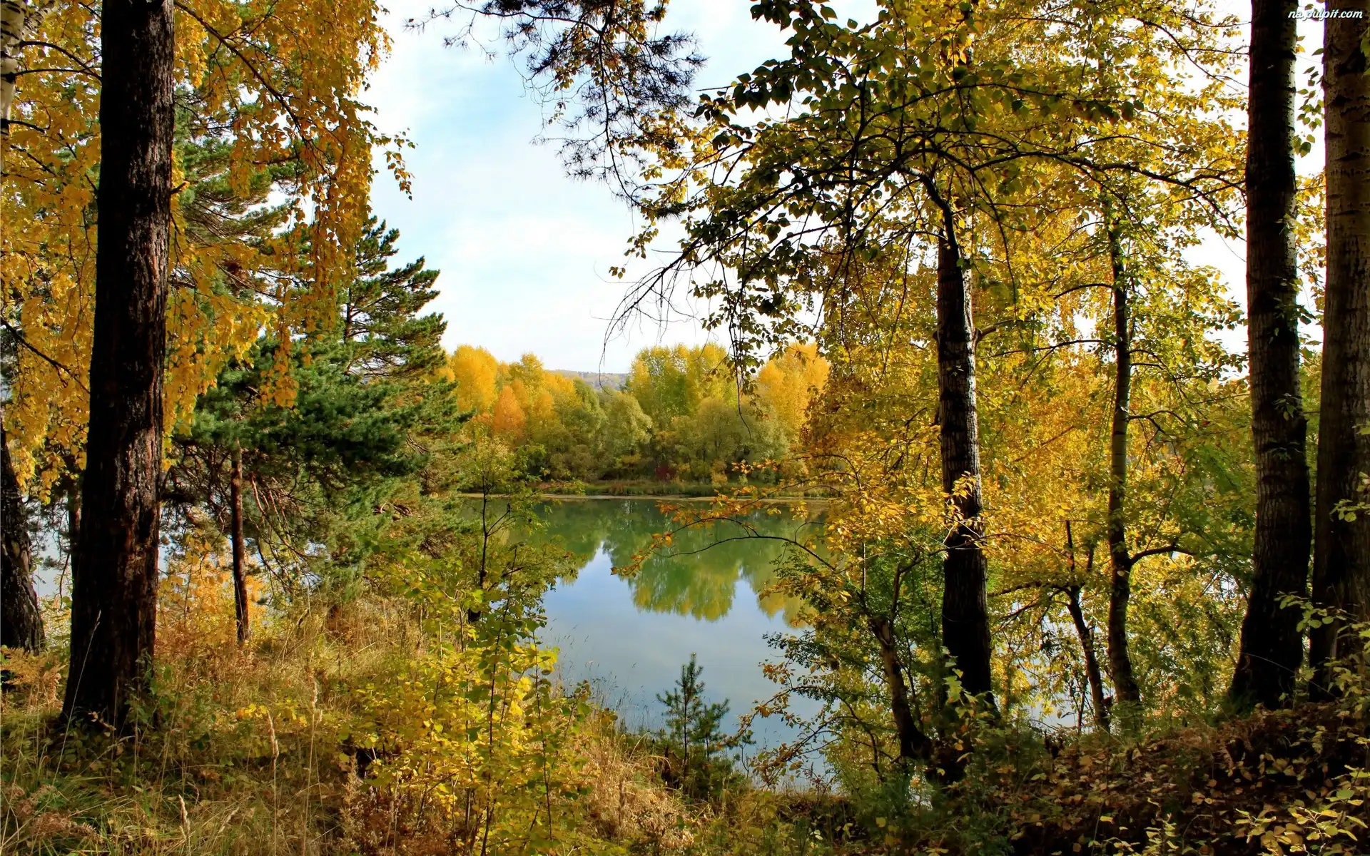 Jesień, Jezioro, Las Na Pulpit