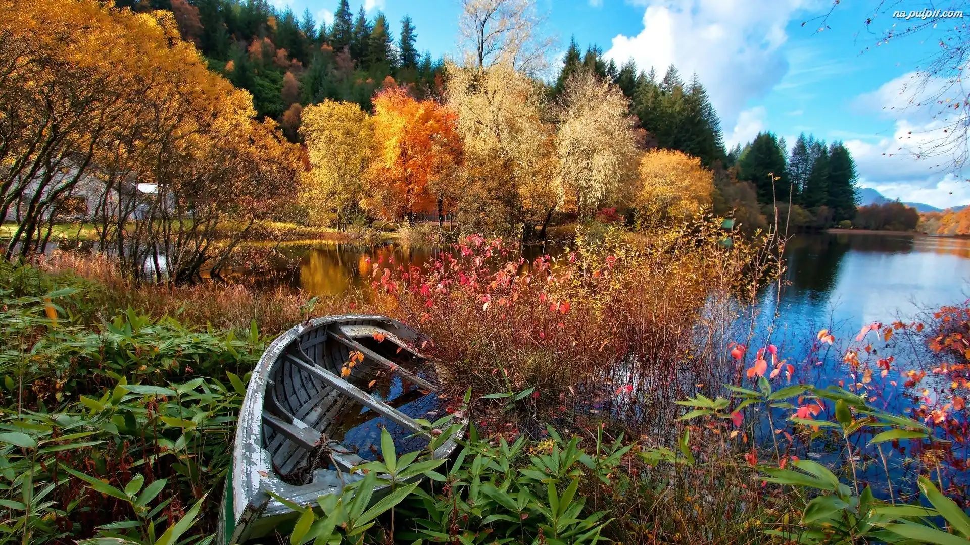 Jesień, Jezioro, Łódka