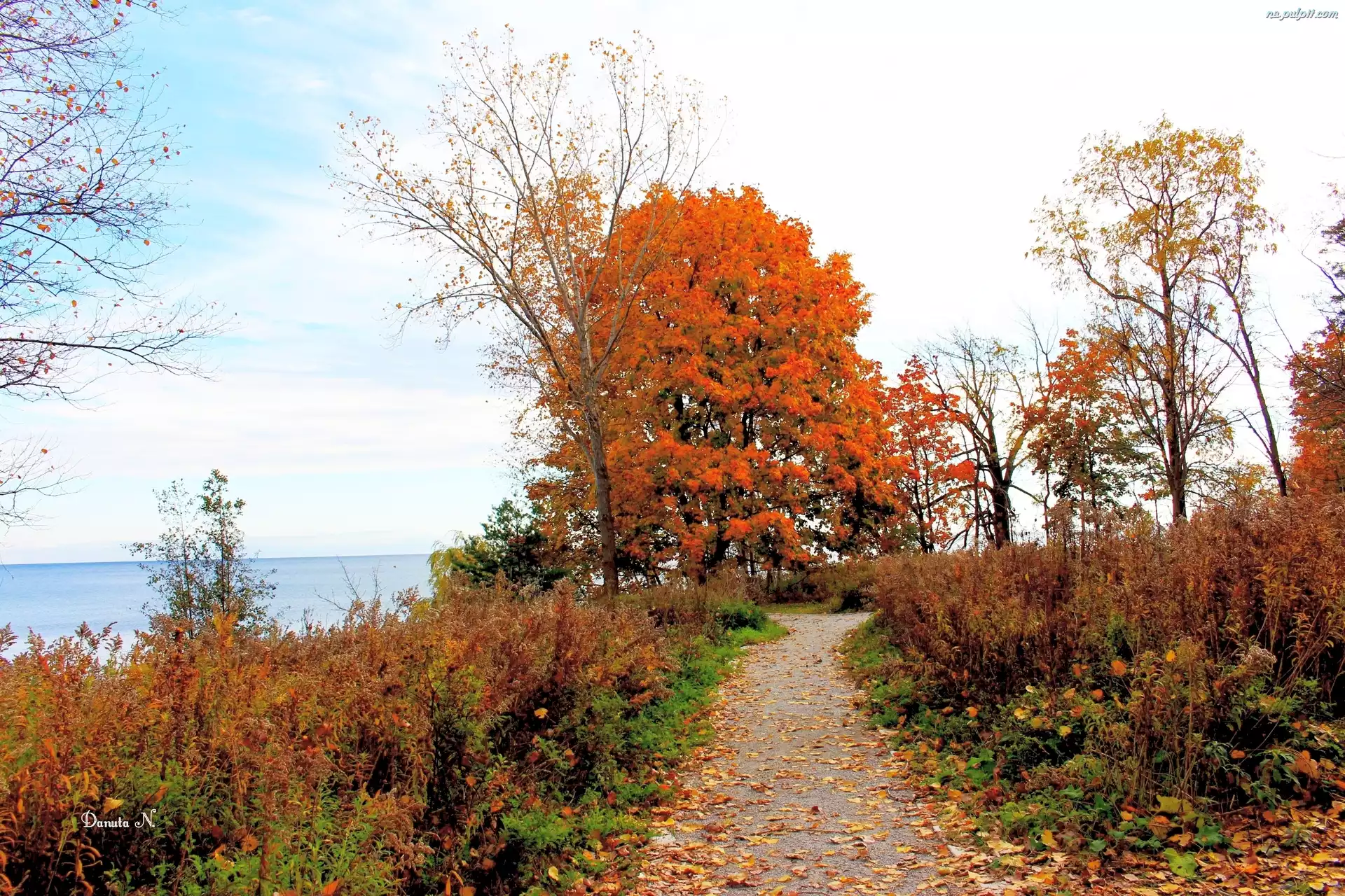 Jezioro, Drzewa, Aleja, Jesienna, Liście Na Pulpit