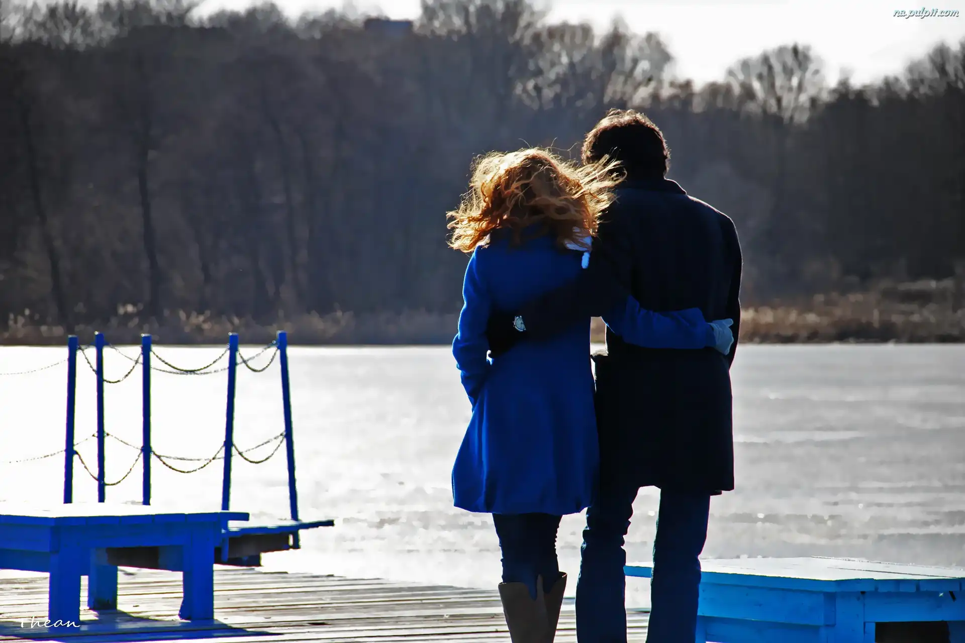 Jezioro, Mężczyzna, Kobieta, Molo Na Pulpit