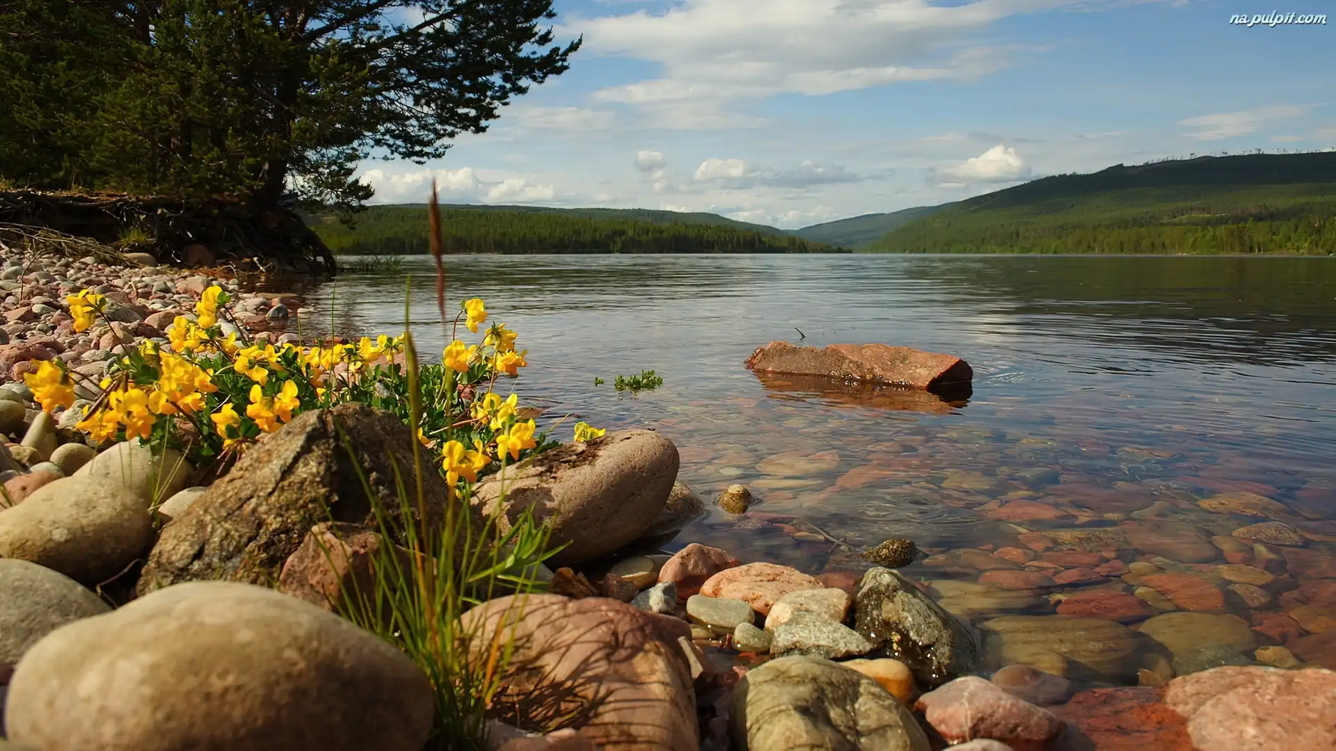 Kwiaty, Jezioro, Kamienie Na Pulpit