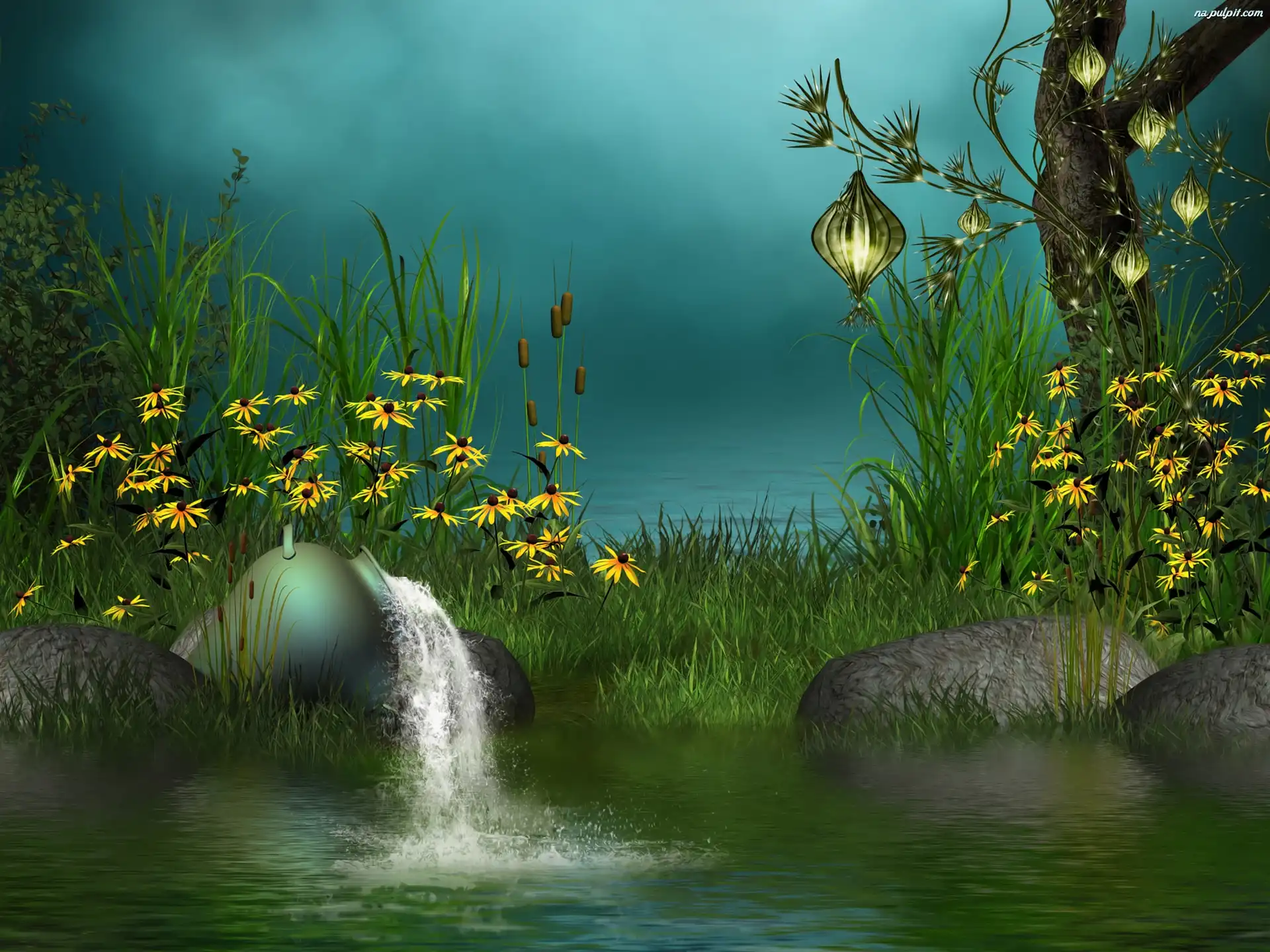 Lampion, Jezioro, Trawa