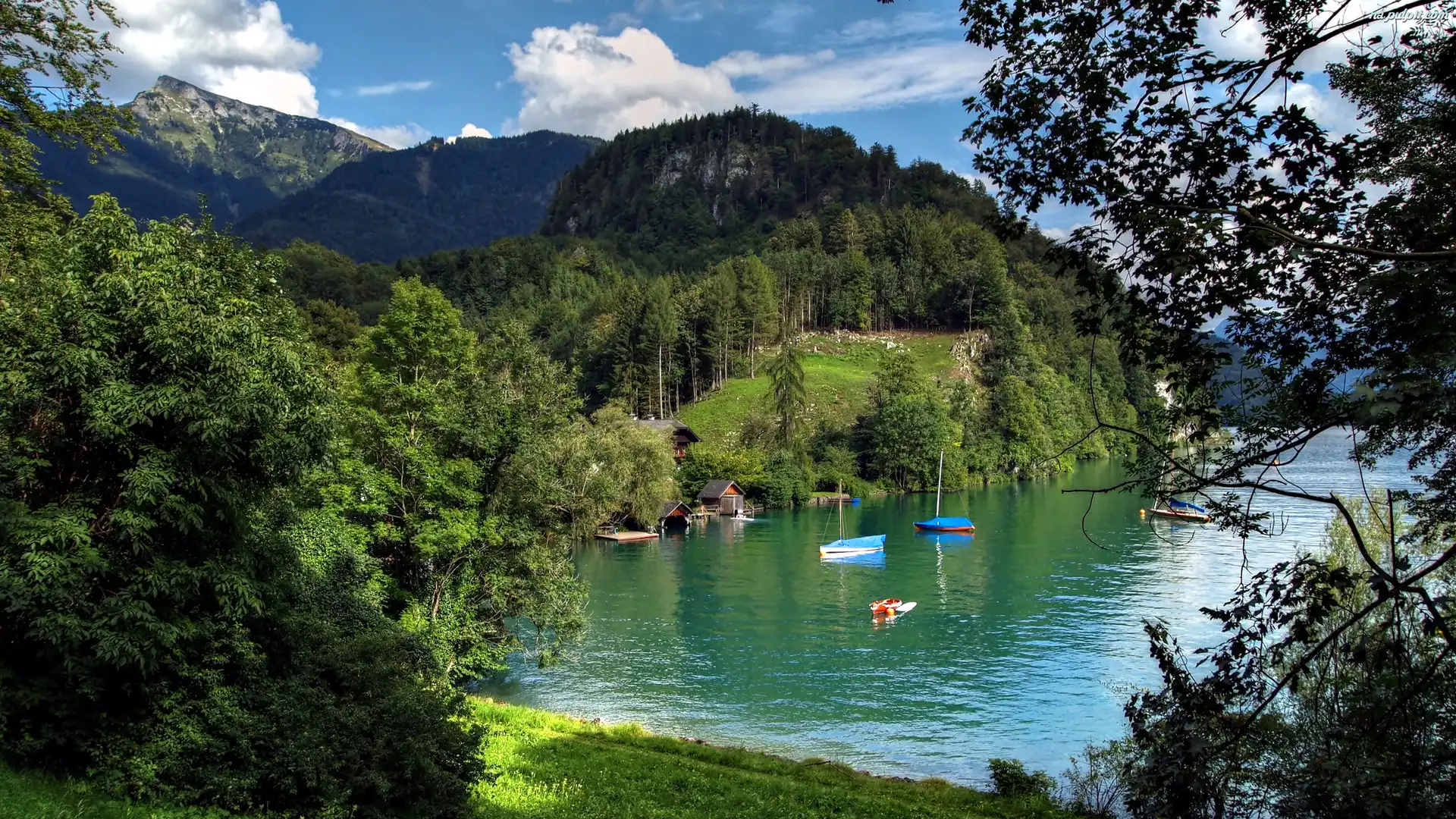 Łódki, Lasy, Góry, Jezioro, Przystań Na Pulpit