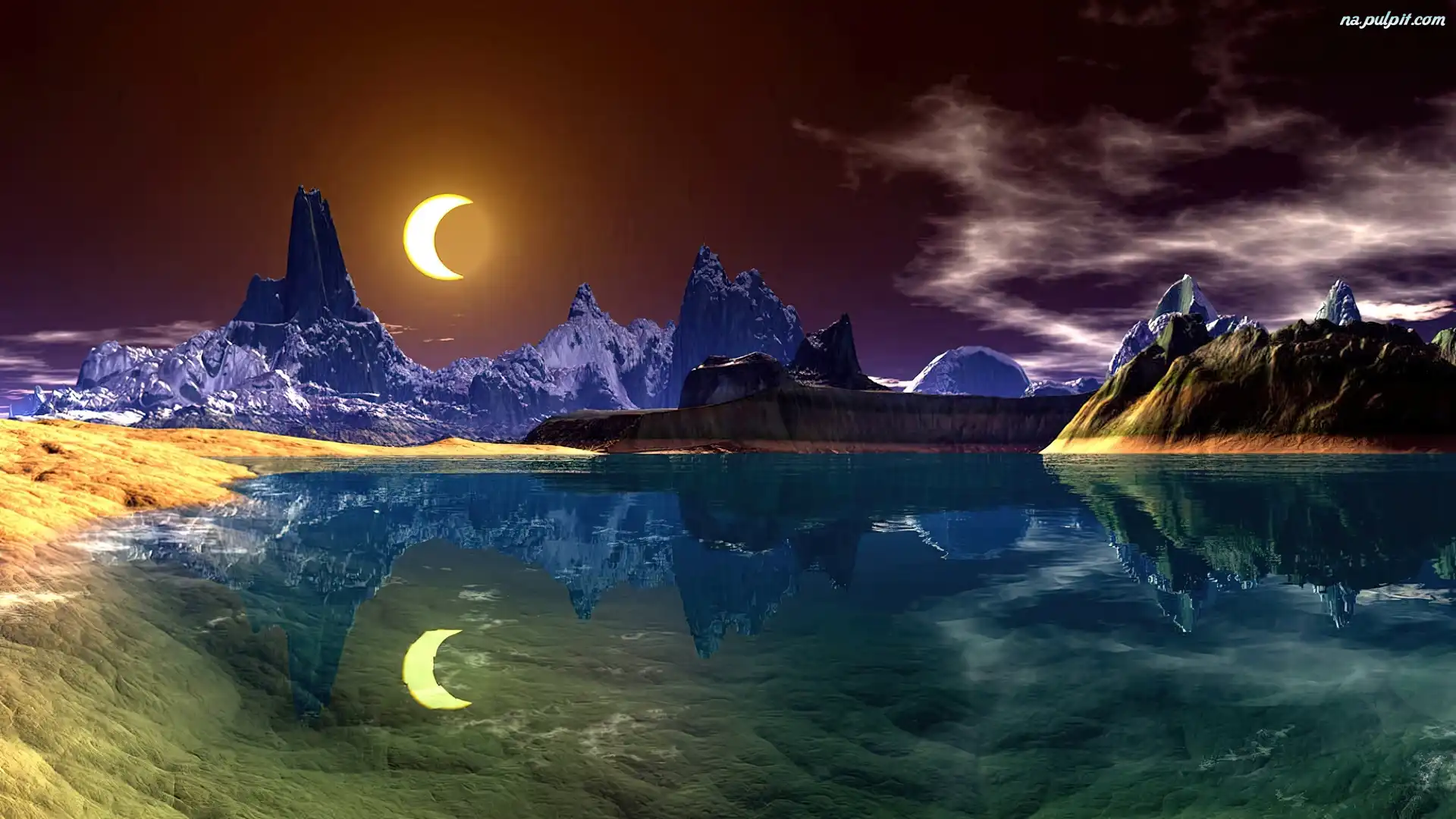 Odbicie, Jezioro, Księżyc Na Pulpit