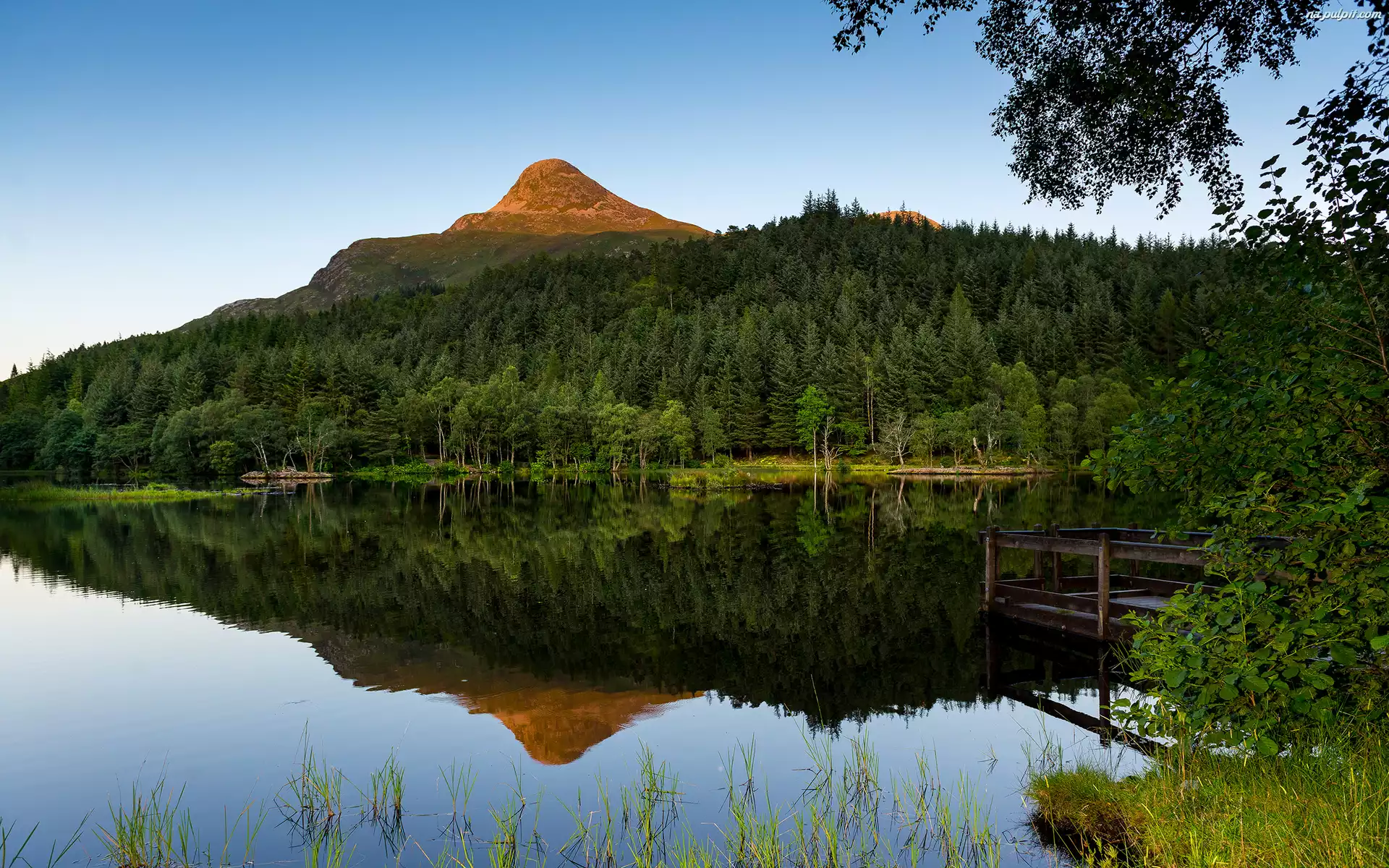 Pomost, Jezioro, Góry, Szkocja, Las Glencoe Lochan Na Pulpit
