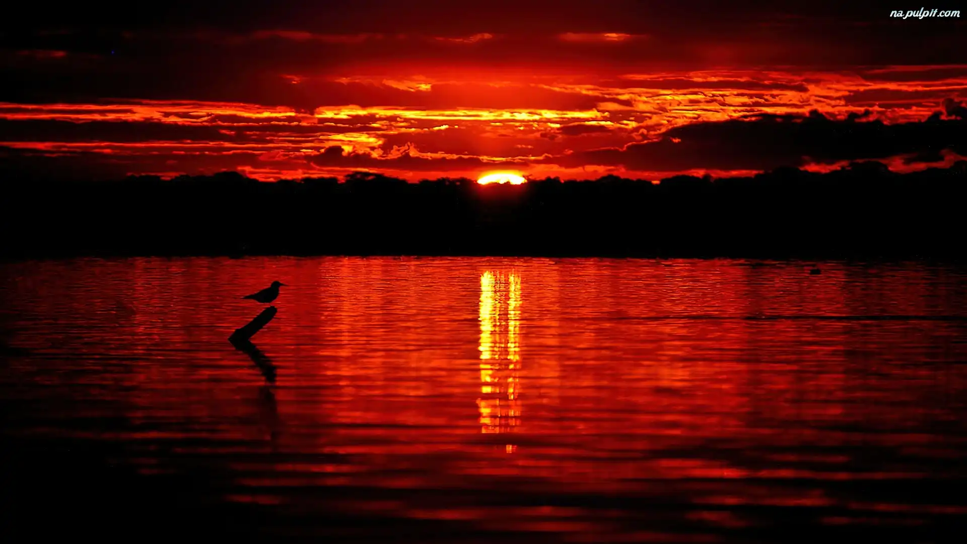 Jezioro, Zachód, Ptak, Słońca Na Pulpit