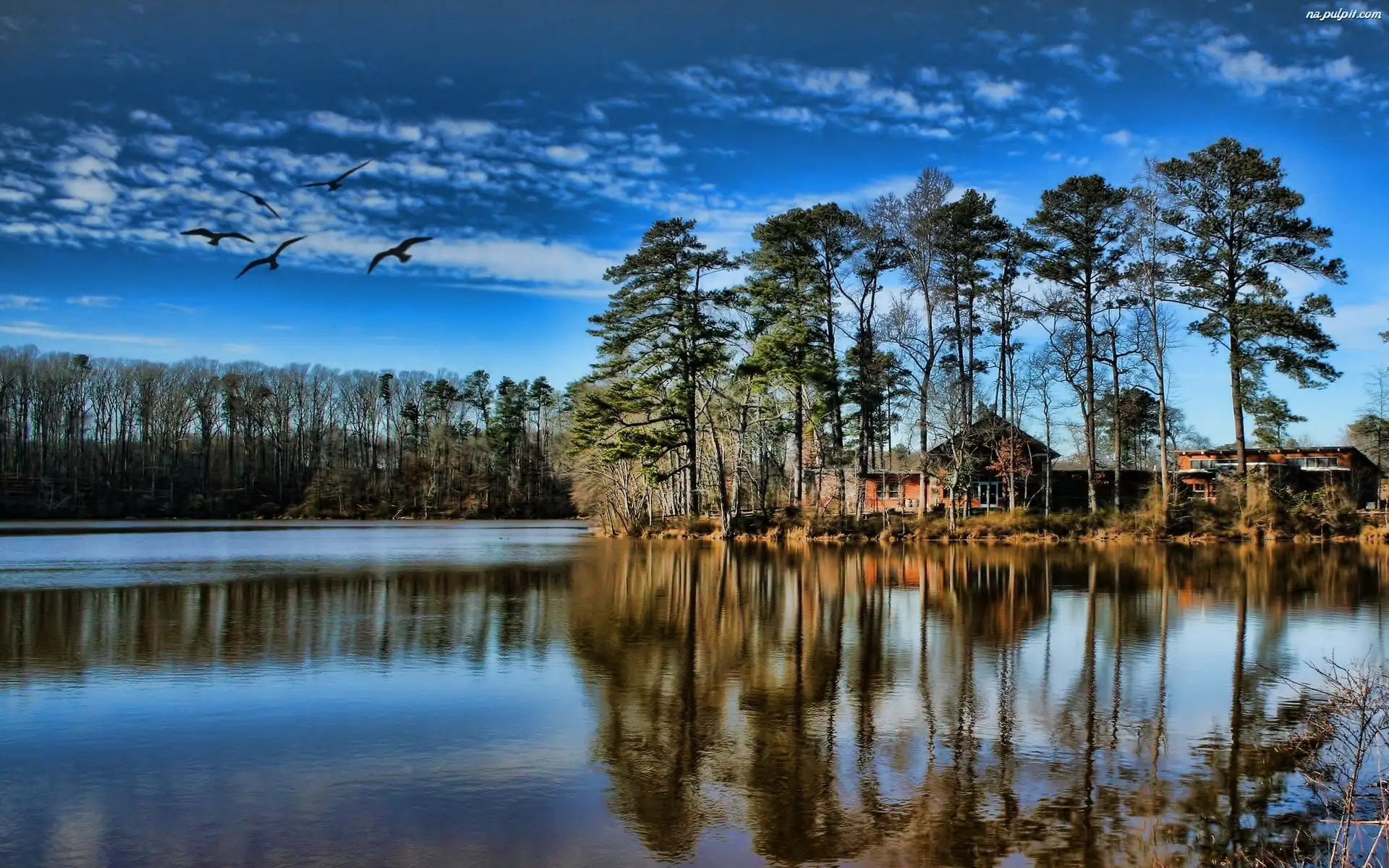 Ptaki, Jezioro, Drzewa Na Pulpit