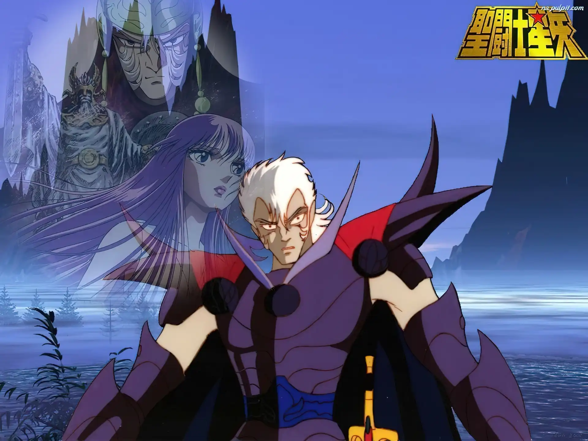 Saint Seiya, napis, ludzie, jezioro Na Pulpit