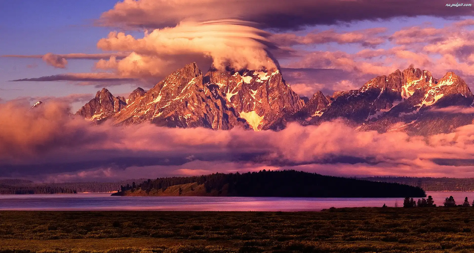 Jezioro, W, Szczyty, Chmurach