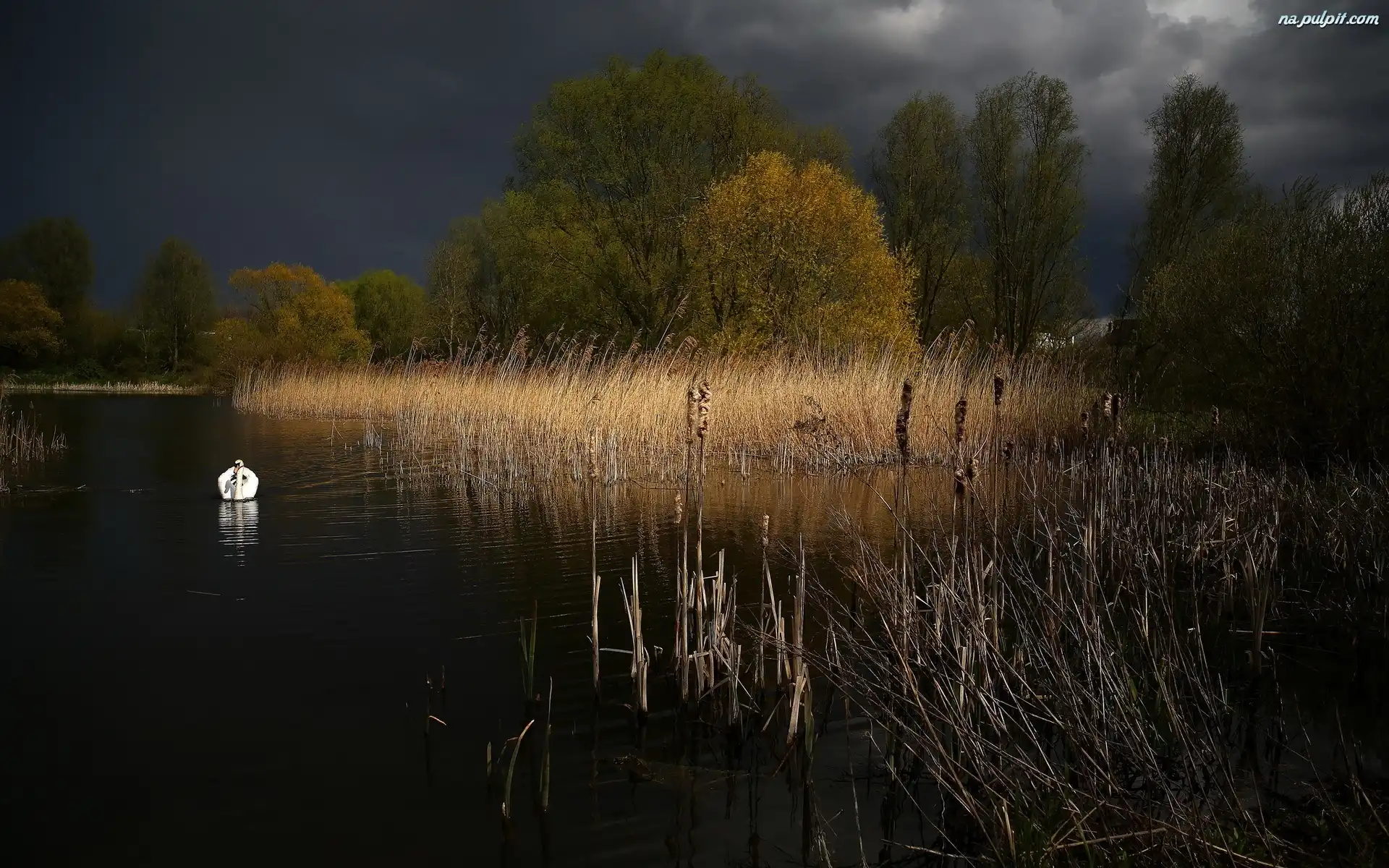Łabędz, Szuwary, Jezioro, Noc Na Pulpit