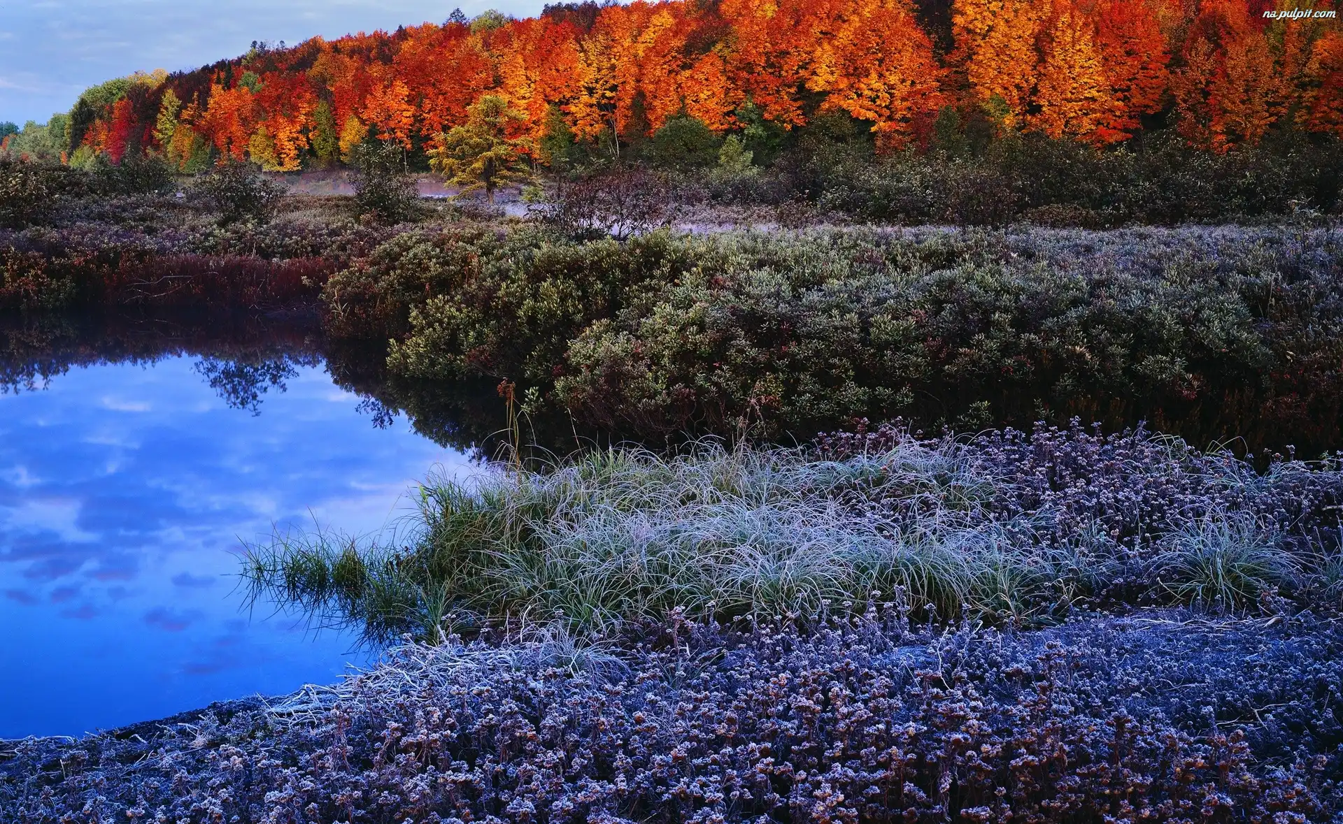 Jezioro, Kwiaty, Trawy, Las Na Pulpit