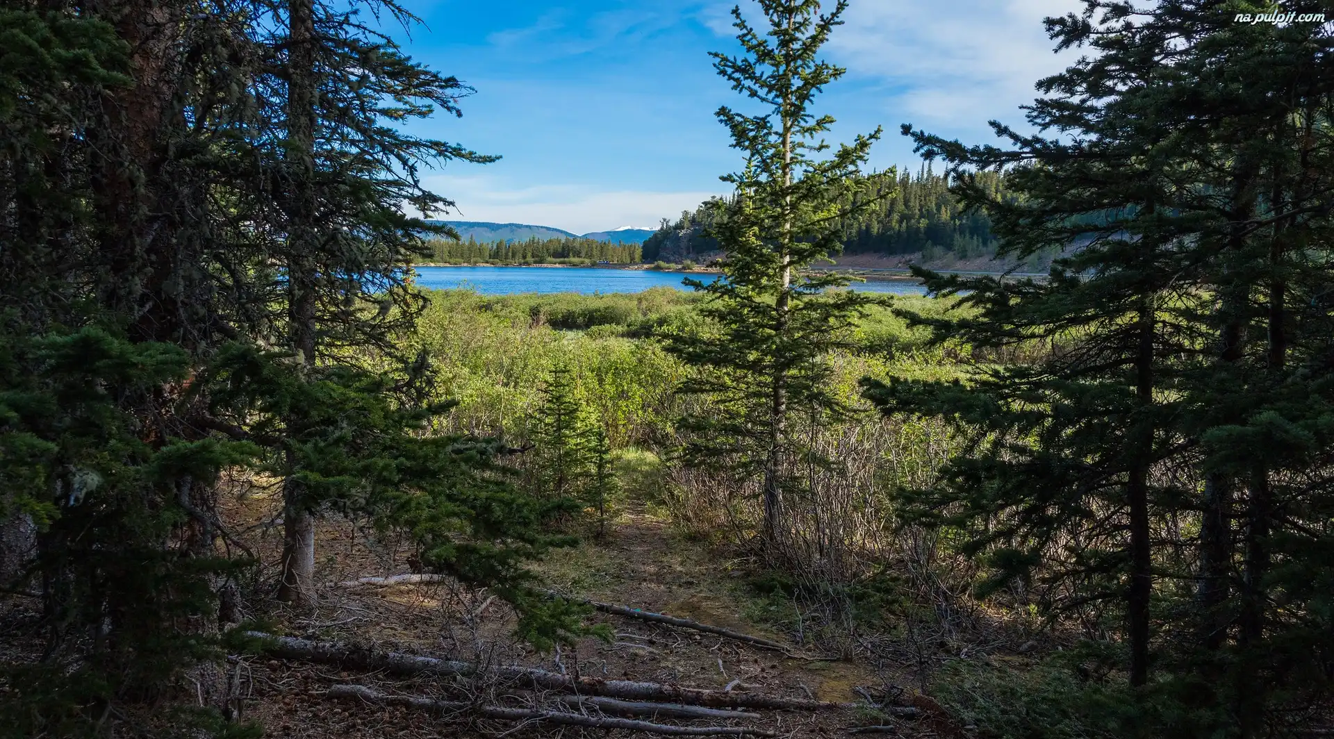 Świerki, Wzgórza, Jezioro, Drzewa Na Pulpit