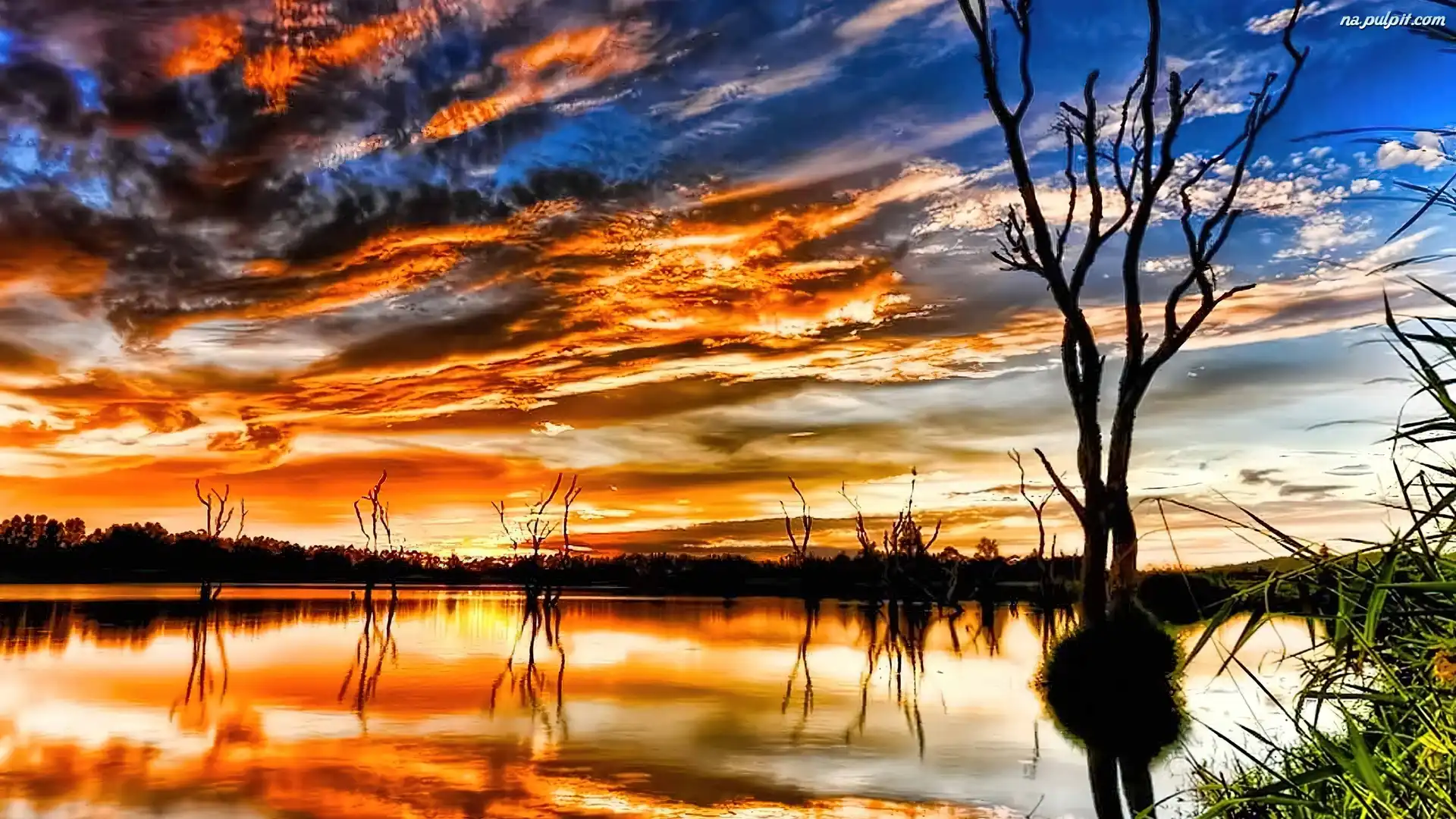 Jezioro, Słońca, Zachód, Chmury Na Pulpit