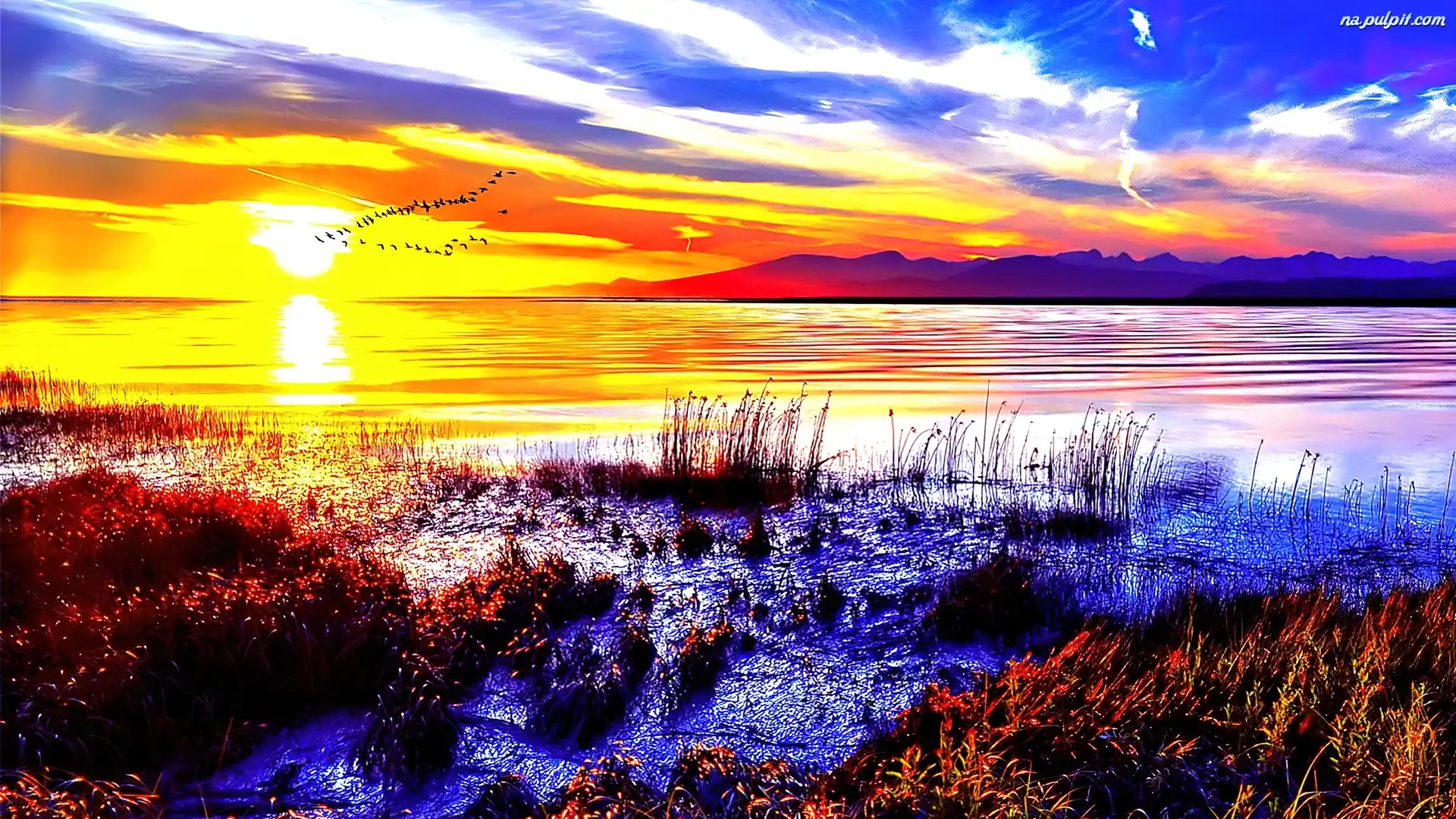 Ławka, Jesień, Jezioro Zima, Góry, Francja, Jezioro Góra zielona, Jezioro Ptak, Zachód Słońca Jezioro Faaker See Chmury, Zachód Słońca Zachód Słońca Jeziorko, Góry, Chmurki Drzewa, Jezioro, Zachód Słońca Łąka, Zachód, Słońca Palmy, Zachód Słońca, Chmury Zachód słońca, Delfiny Mała Fala, Zachód Słońca, Chmura Plaży, Dzieci, Na
