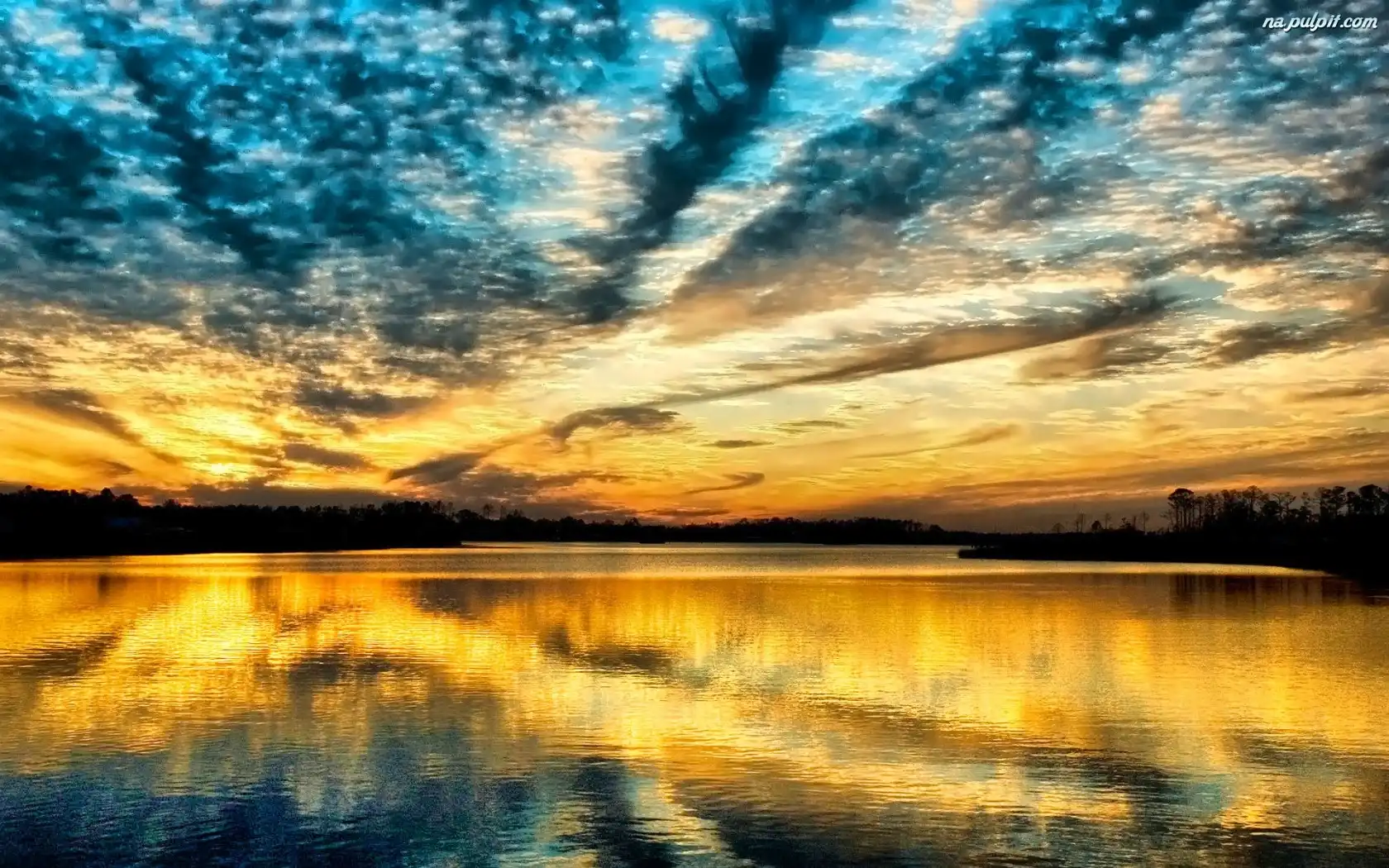 Jezioro, Chmury, Słońca, Zachód, Niebo Na Pulpit