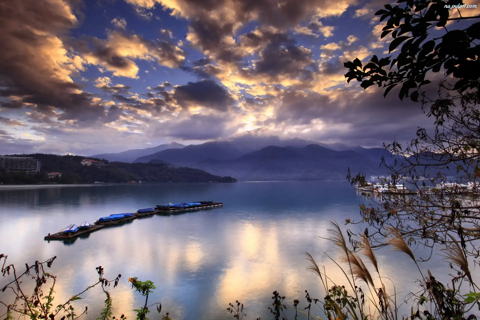 Jezioro, Słońca, Zachód, Góry Na Pulpit